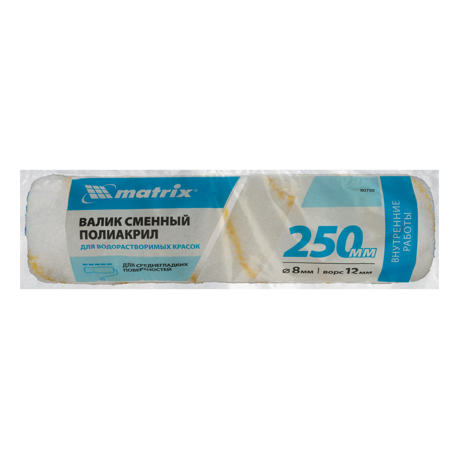 Сменный синтетический валик Matrix 80750 шириной 250 мм и диаметром 48 мм, под бюгель диаметром 8 мм, с ворсом 12 мм из полиакрила, оптимален для проведения малярных работ внутри помещений. Шубка с ворсом длиной 12 мм подходит для окрашивания средне-гладких поверхностей: полов, стен и потолков. Полиакрил в составе обеспечивает высокое качество работ с любыми типами ЛКМ, делает шубку износоустойчивой и формостойкой.
