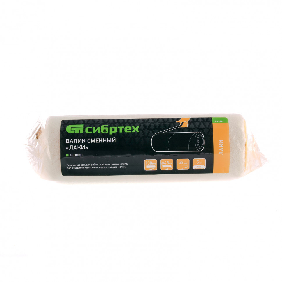 Сменный валик Сибртех «Лаки» 80180 с ворсом 5 мм из велюра, роликом 180 х 48 мм, под ручку 8 мм, подходит к модели Сибртех 80178. За счет шубки из велюра с коротким ворсом он равномерно наносит материал тонким слоем, поэтому оптимален для малярных работ с лаками. Валик шириной 180 мм удобен для окрашивания больших площадей.