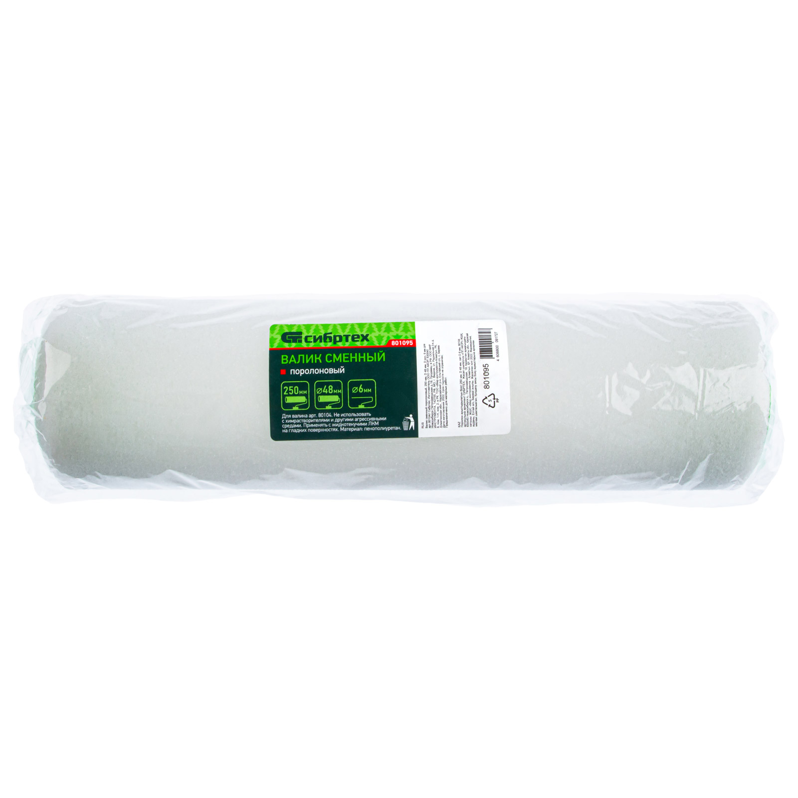 Поролоновый сменный валик Сибртех 801095 шириной 250 мм и диаметром 48мм используется в качестве сменного для валика Сибртех 80104. Он предназначен для покрытия гладких поверхностей невязкими водно-дисперсионными красками, например, латексными и акриловыми, а также пропитками, водно-клеевыми составами и грунтовкой. Шубка из поролона отлично впитывает лакокрасочные материалы, обеспечивая высокую производительность работы. Не рекомендуется использование поролоновых валиков с ЛКМ содержащими в составе едкие химические элементы.