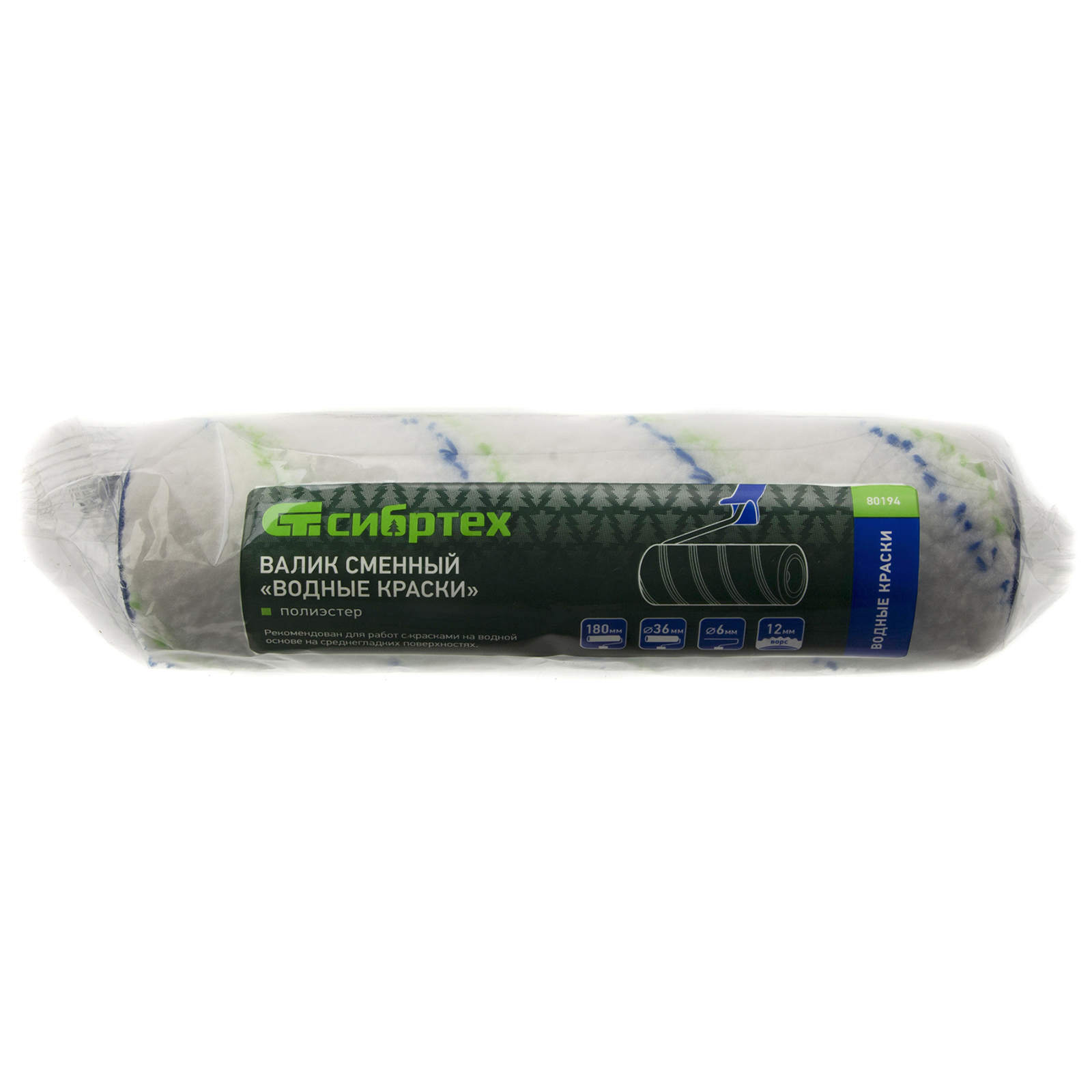 Сменный валик Сибртех «Водные краски» 80194 180 х 36 мм, с ворсом 12 мм из полиэстера, устанавливается на ручку диаметром 6 мм. Оптимален для работы с водно-дисперсионными красками. Универсальная длина ворса 12 мм подходит для окрашивания большинства типов поверхностей.