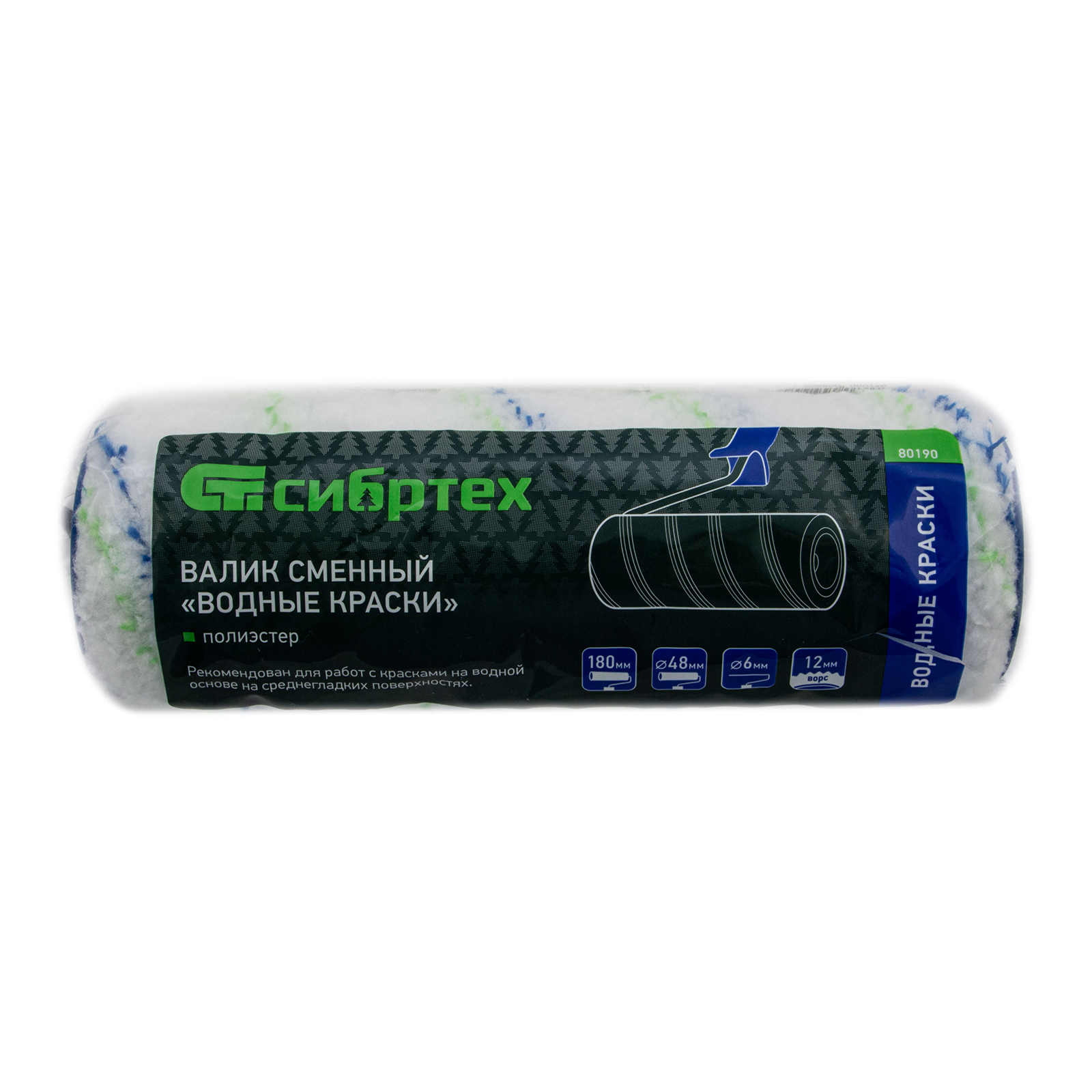 Сменный валик Сибртех «Водные краски» 80190 180 х 48 мм, с ворсом 12 мм из полиэстера, устанавливается на ручку диаметром 6 мм. Оптимален для работы с водно-дисперсионными красками. Универсальная длина ворса 12 мм подходит для окрашивания большинства типов поверхностей.