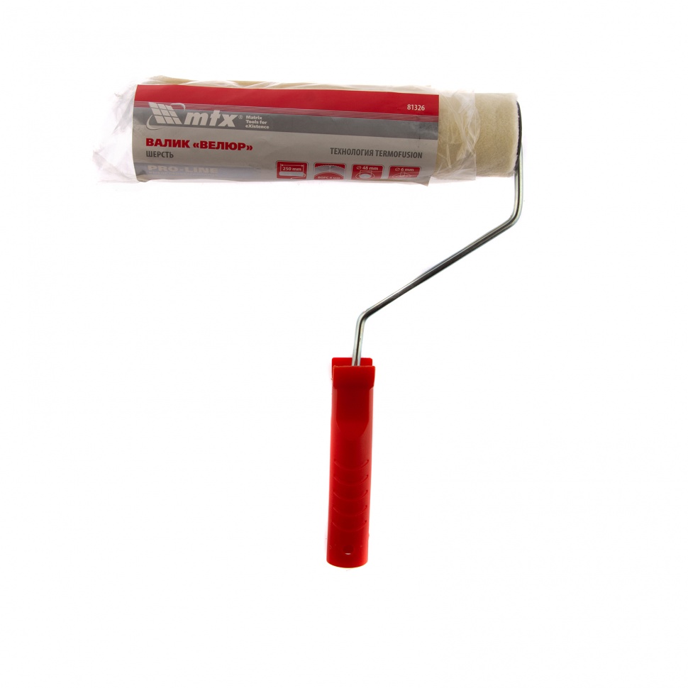 Валик MTX PRO «ВЕЛЮР» 81326 шириной 250 мм, с ворсом 4 мм из шерсти 50% и полиакрила 50%, диаметром ролика 48 мм и ручкой 6 мм, используется для выполнения финишной отделки. Благодаря короткому ворсу лакокрасочный состав распределяется тонким слоем. Валик оптимален для работы с алкидными и эпоксидными лаками, но подходит также для нанесения тонким слоем других материалов, например, защитных составов на основе растворителей.