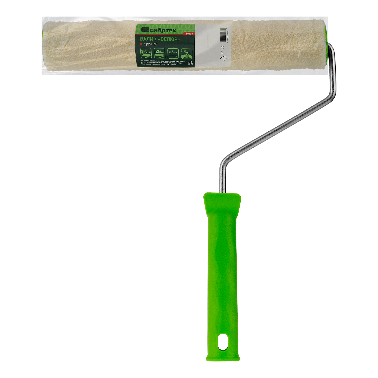 Валик Сибртех «ВЕЛЮР» 80135 с ручкой 6 мм, роликом 240 х 36 мм и ворсом 5 мм, применяется для окрашивания гладких поверхностей. Обеспечивает нанесение материалов максимально тонким слоем, поэтому оптимален для работы с лаками. Велюровая шубка изготовлена из натуральной шерсти с полиакрилом, что повышает износостойкость валика.