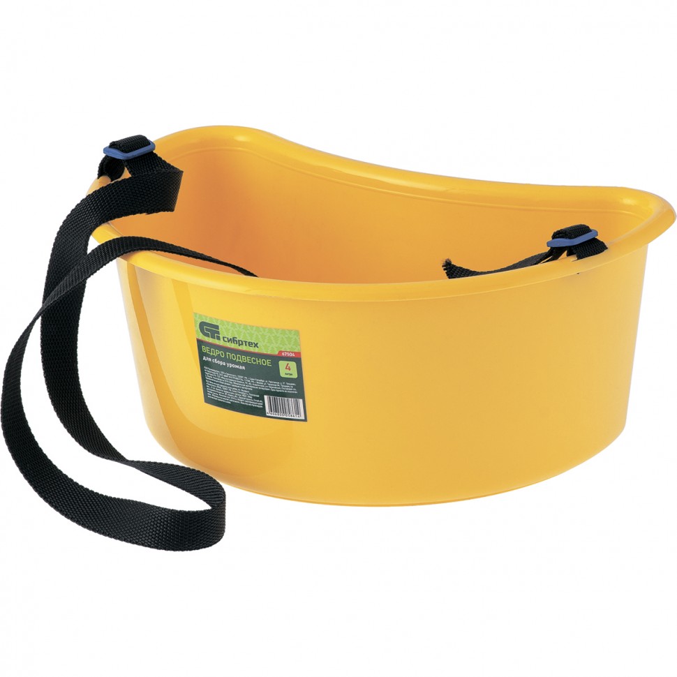 Ведро для сбора урожая Сибртех 67504 с наплечным ремнем, объемом 4 л, пригодится на даче для сбора ягод, овощей и фруктов. Его можно повесить на плечо или шею за ремешок, что позволяет работать обеими руками и избавляет от необходимости наклоняться. За счет полукруглой формы ведро удобно прилегает к телу, поэтому не доставляет дискомфорта даже при полной загрузке.