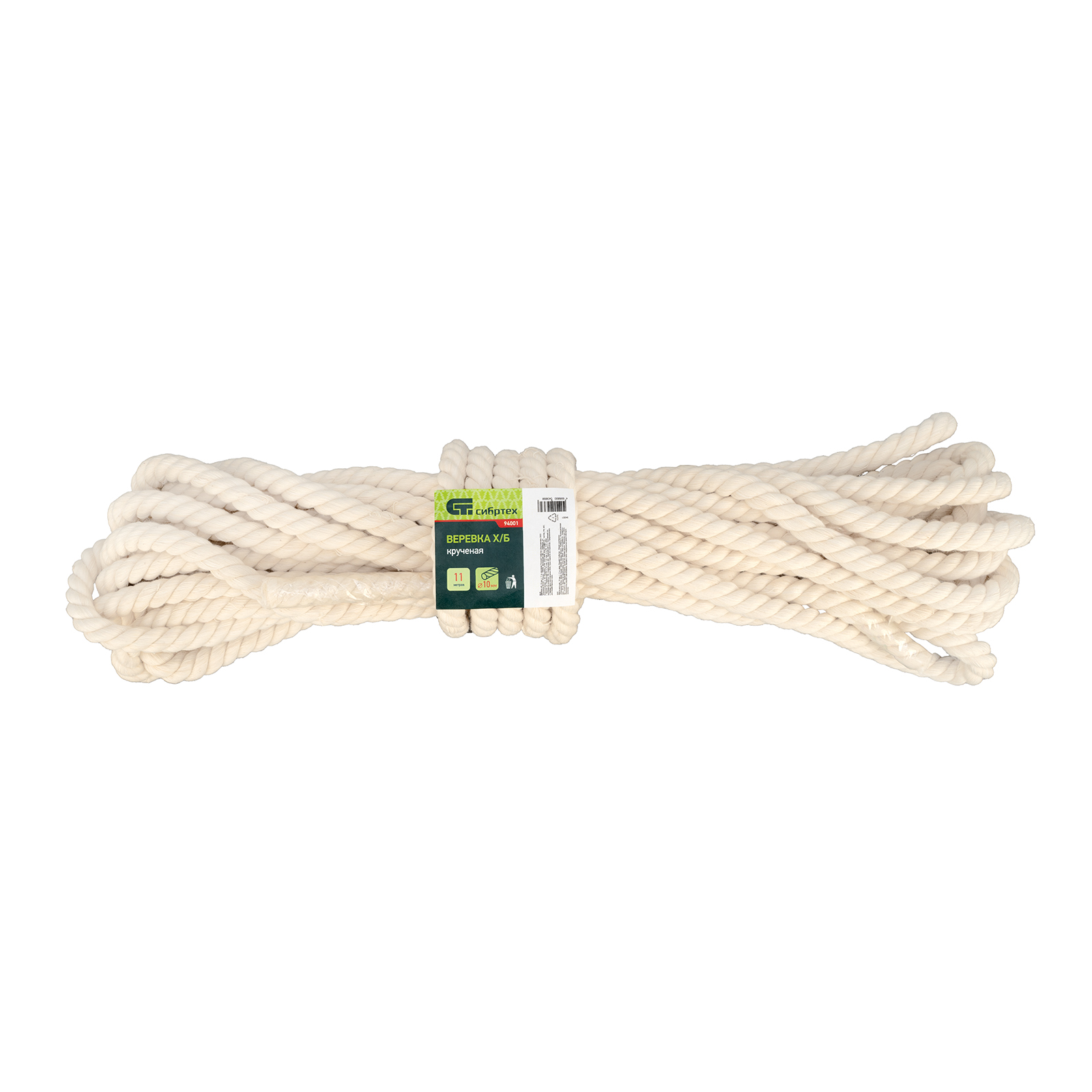 Крученая х/б веревка Сибртех 94001, 10 мм, L 11 м, используется в домашнем хозяйстве и для грузоперевозок, а также в садоводстве, туризме, промышленности. Благодаря толщине 10 мм изделие обладает необходимой прочностью.