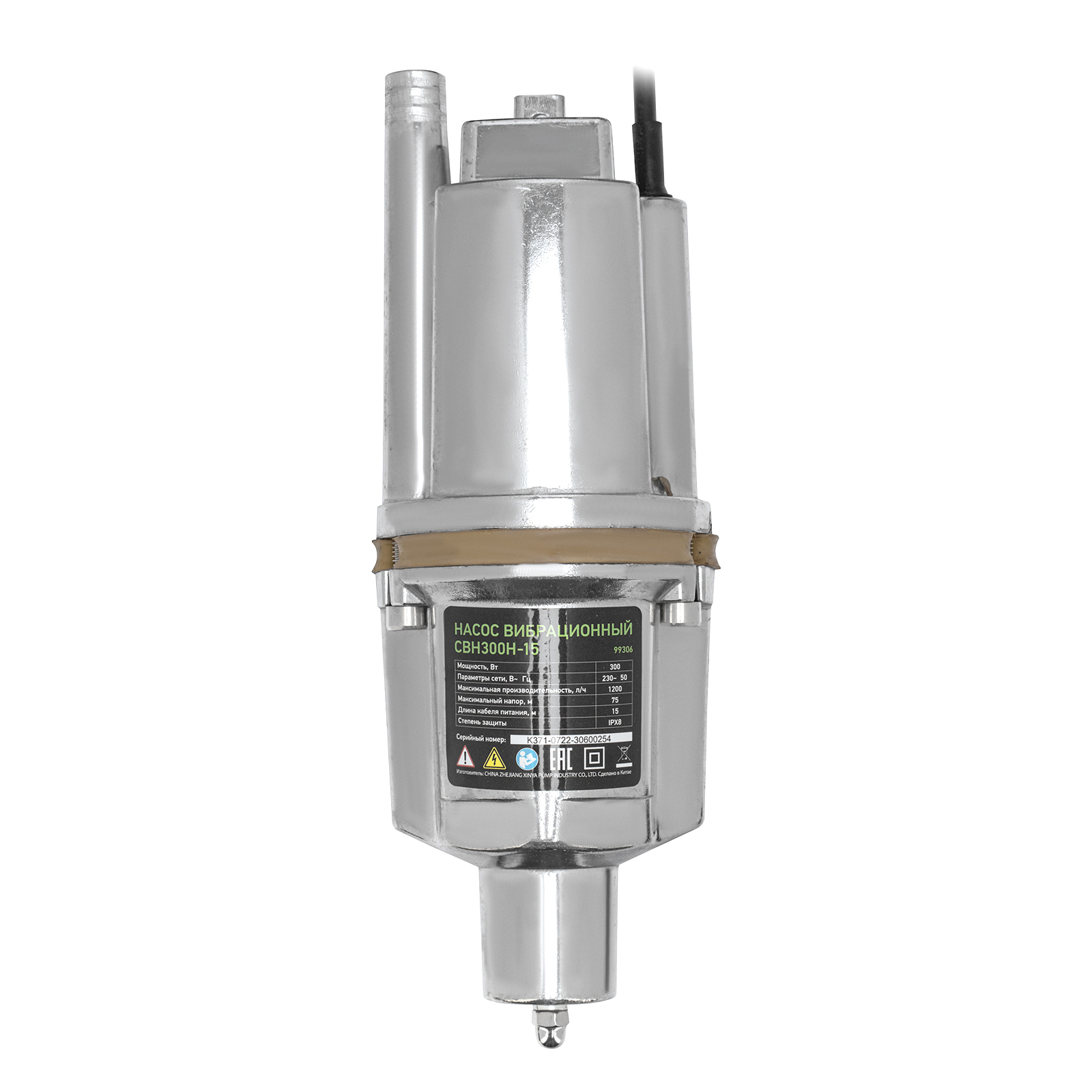 Вибрационный насос Сибртех СВН300Н-15 99306 с кабелем длиной 15 м имеет мощность 300 Вт и производительность до 1200 л/ч, обеспечивает напор до 75 м и используется при откачке воды из резервуаров и скважин диаметром от 100 мм. С его помощью можно организовать систему орошения и водоснабжения на даче, а также осушить затопленное помещение. Благодаря увеличенной высоте подъема насос можно использовать в доме с несколькими этажами.