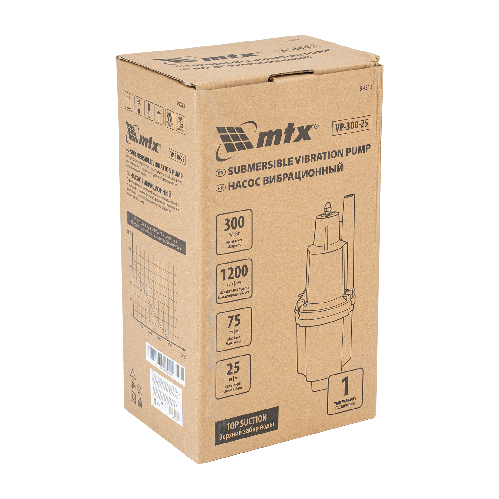 Вибрационный насос MTX VP-300-25 99313 мощностью 300 Вт и производительностью 1200 л/ч, с кабелем длиной 25 м, обеспечивает напор до 75 м. Предназначен для перекачивания чистой воды из колодцев и открытых водоемов, осушения бассейнов и емкостей, забора воды из резервуаров для полива. Система верхнего забора жидкости предотвращает попадание песка и ила со дна, также насос не нуждается в термозащите — корпус полностью погружается в воду, что обеспечивает необходимое охлаждение. Высокопроизводительный насос позволяет организовать эффективную систему водоснабжения и орошения на дачном участке.