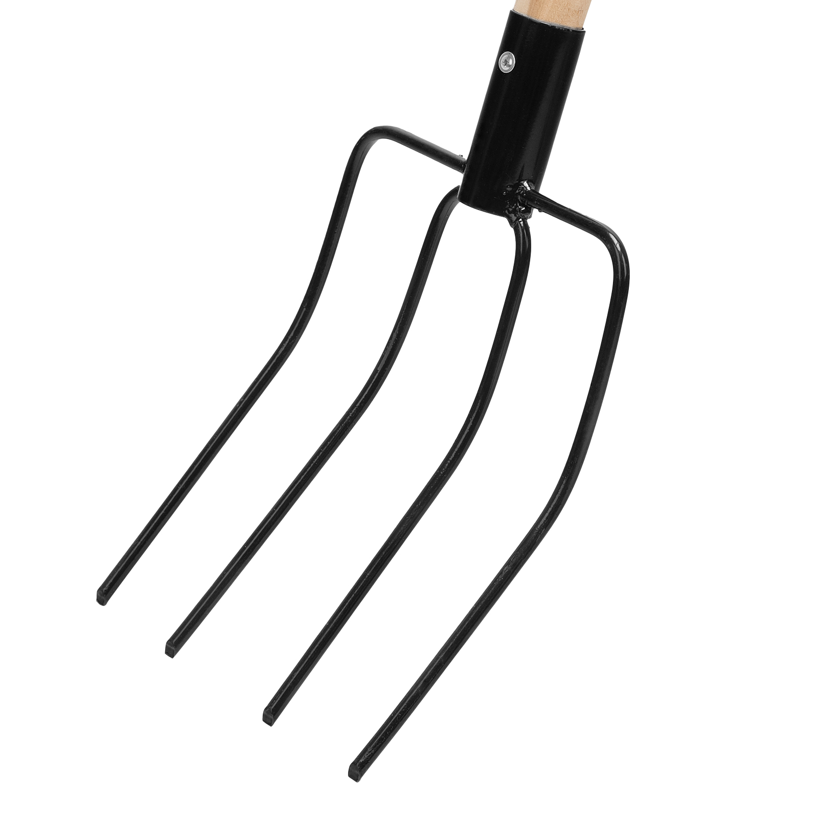 - Комфортная работа — деревянный черенок обеспечивает удобный хват, а рога с острыми концами надежно захватывают траву и сено.