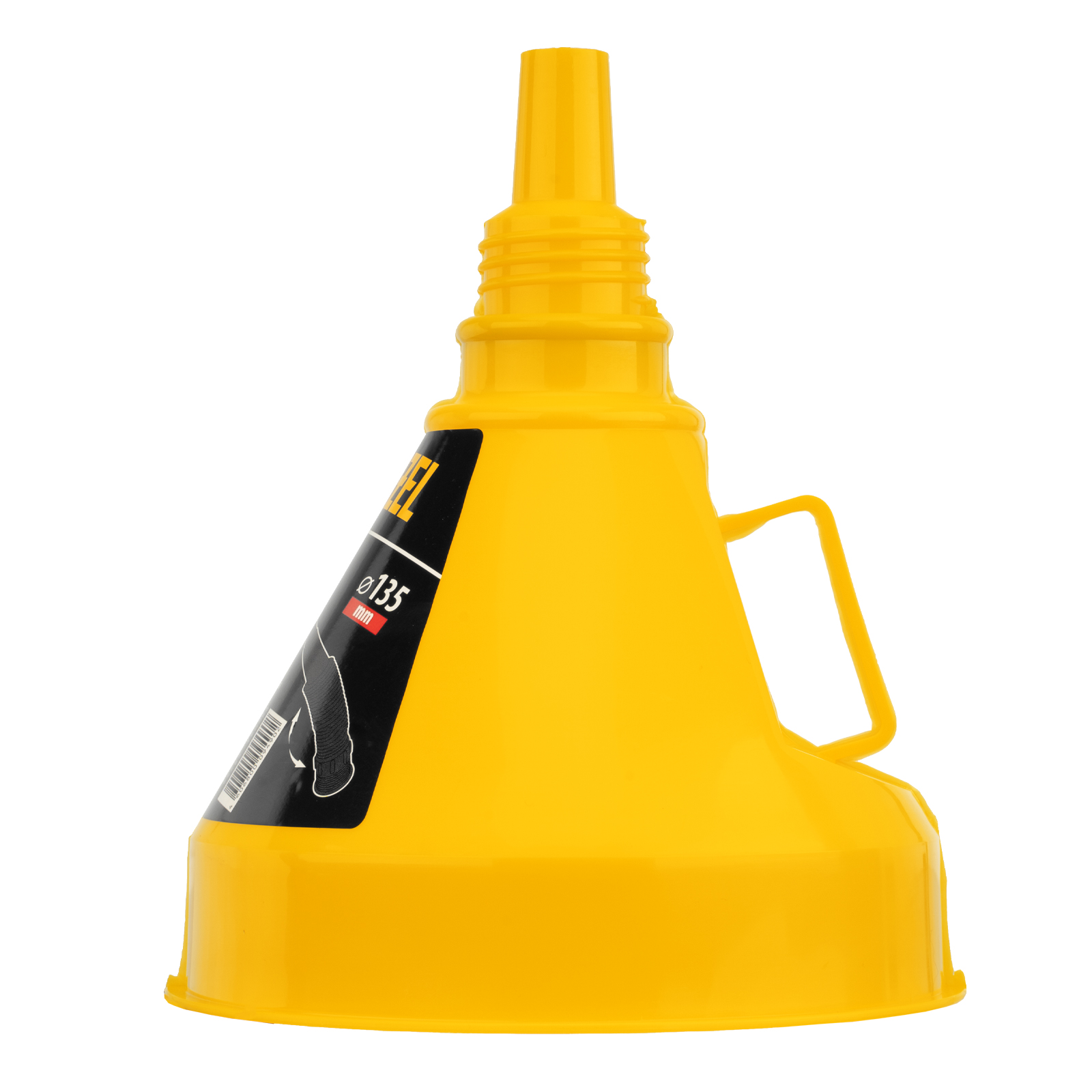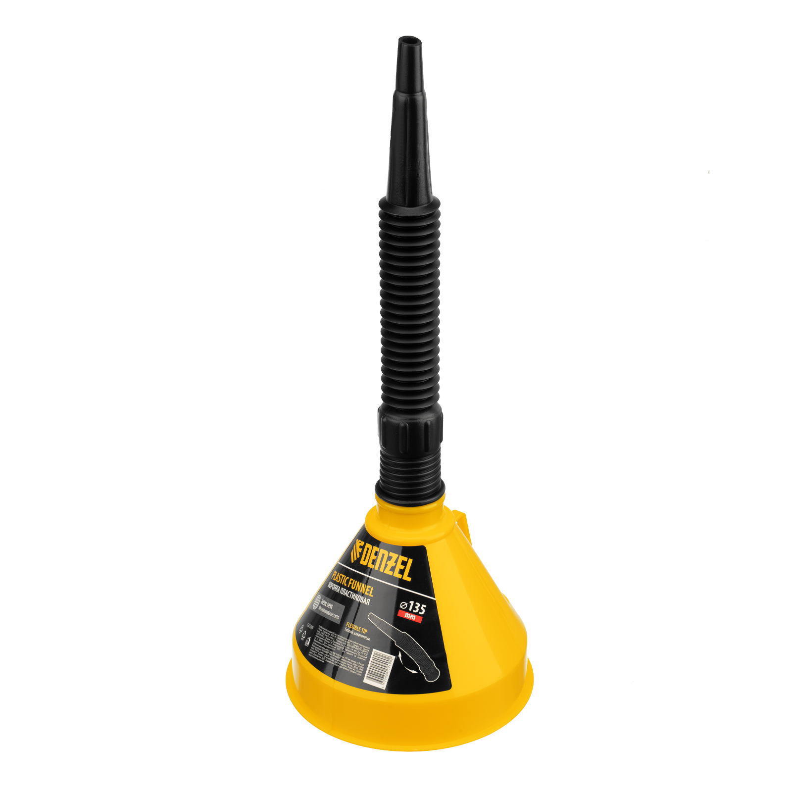 Пластиковая воронка Denzel 537209 диаметром 135 мм, с металлическим сетчатым фильтром и гибким наконечником, позволяет переливать топливо, антифриз, масло и другие горюче-смазочные материалы. Будет полезна автовладельцам: с ее помощью процедура происходит гораздо быстрее и без риска испачкаться. Воронка выполнена из маслобензостойкого материала.
