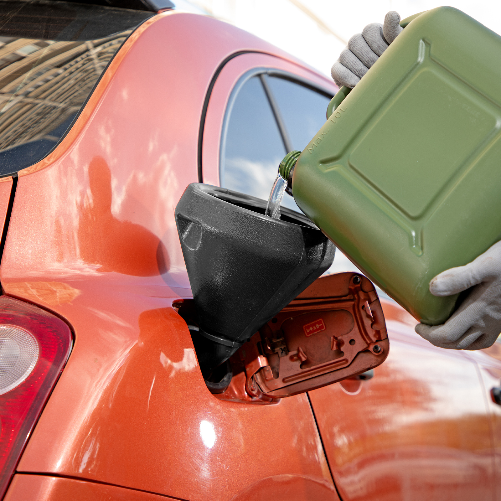 - Удобная эксплуатация — за счет скошенного наконечника воронка плотно прилегает к отверстию, а благодаря ее изогнутым краям жидкость не проливается.