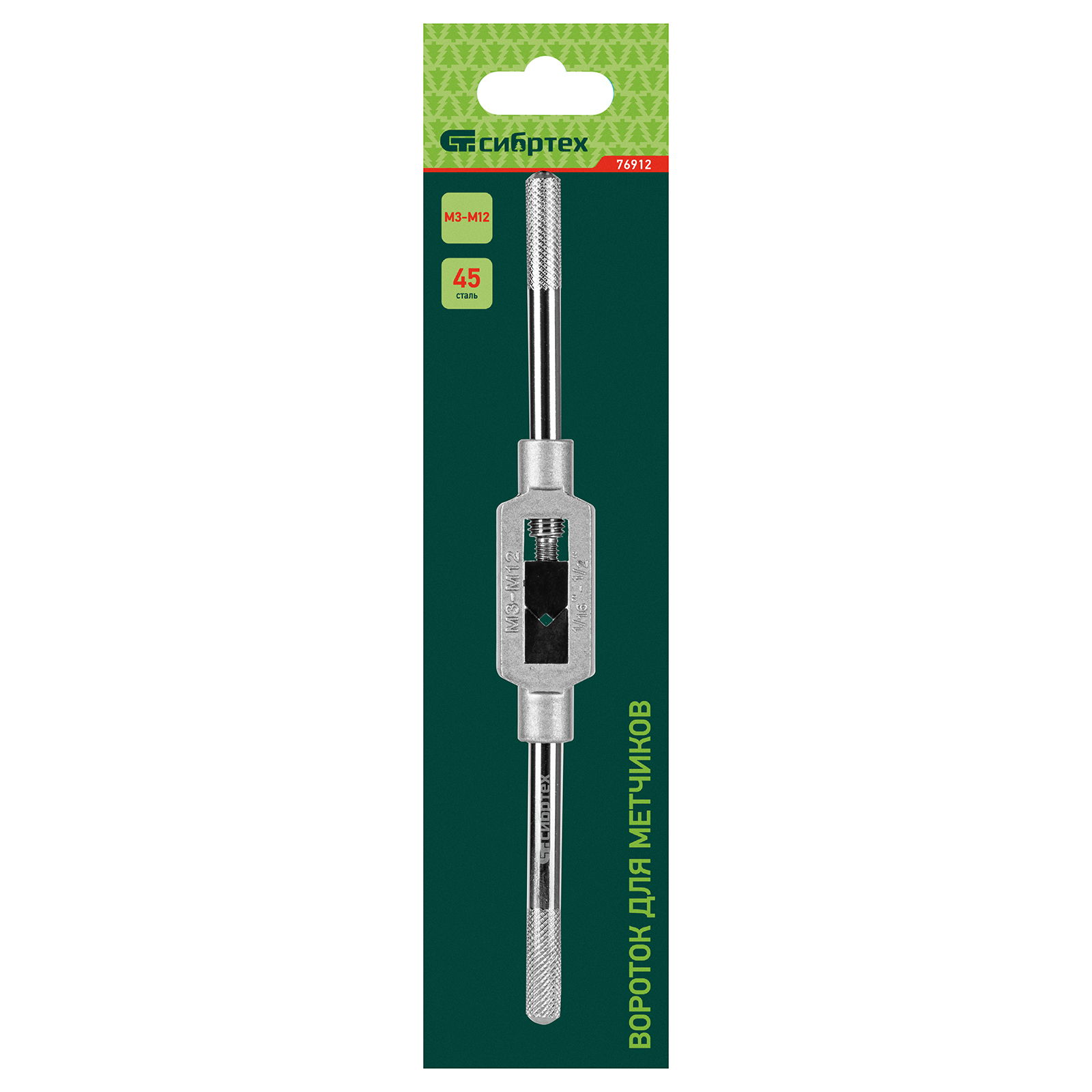 Вороток Сибртех 76912 подходит для зажима метчиков, используемых для ручного нарезания внутренней резьбы М3-М12 в отверстиях и цилиндрических деталях. Применяется во время ремонта резьбовых соединений, пригодится в мастерской или гараже.