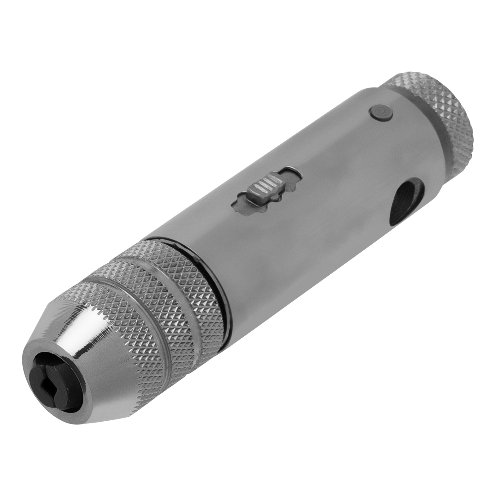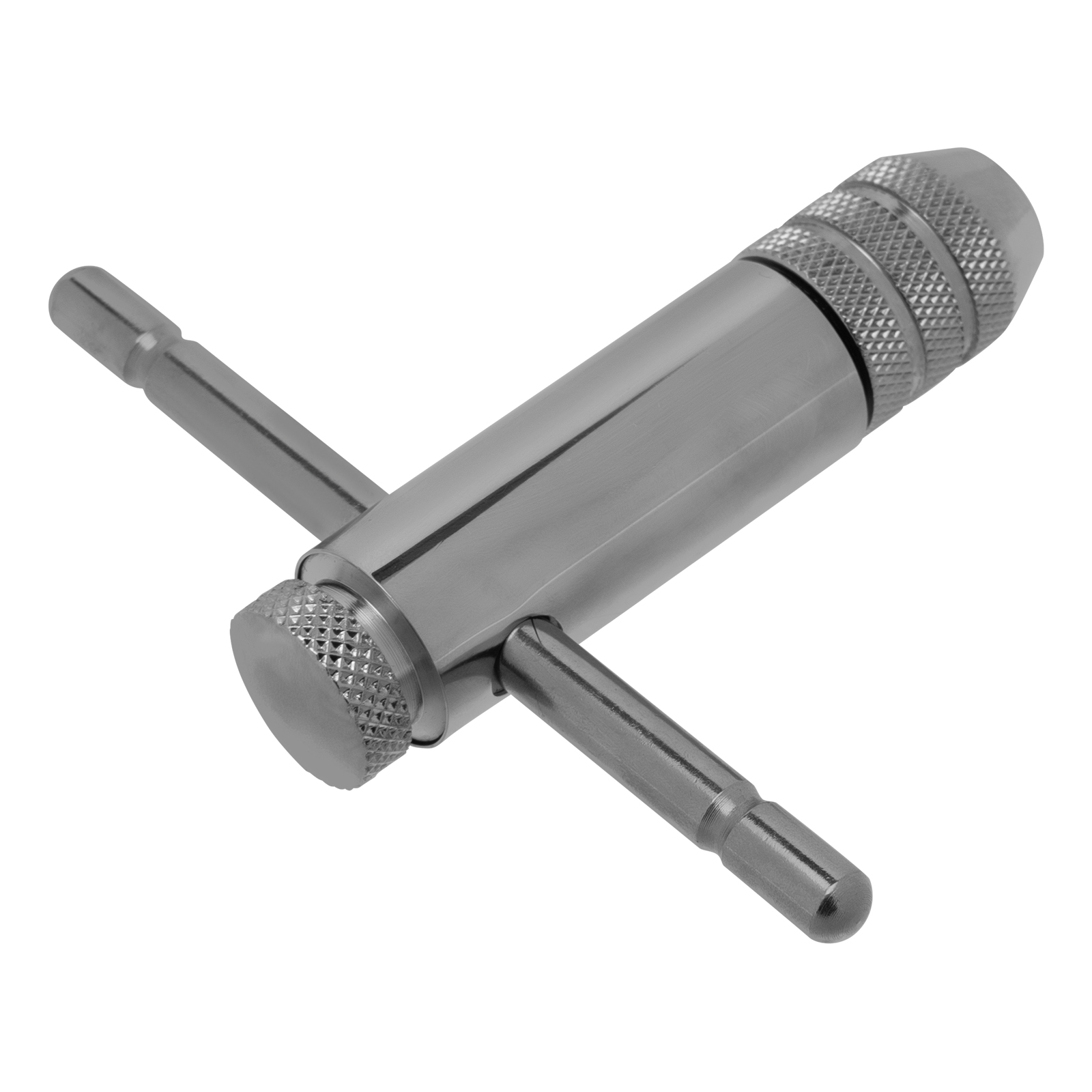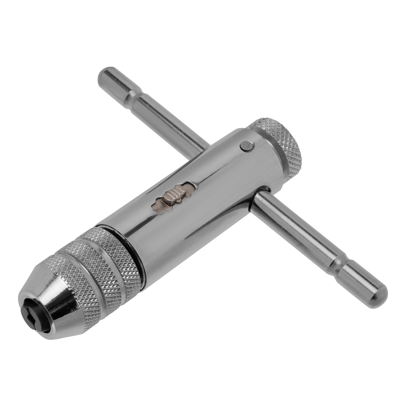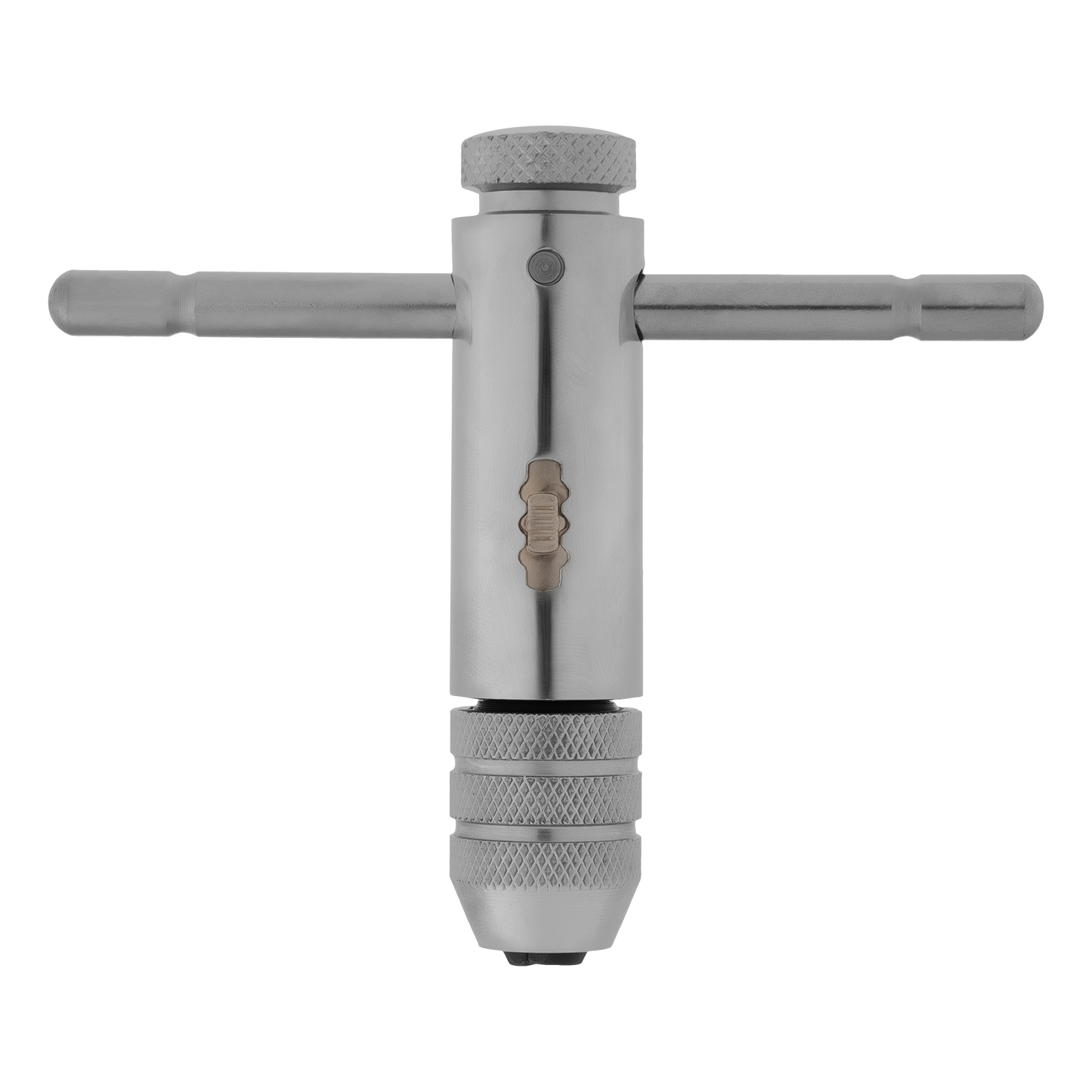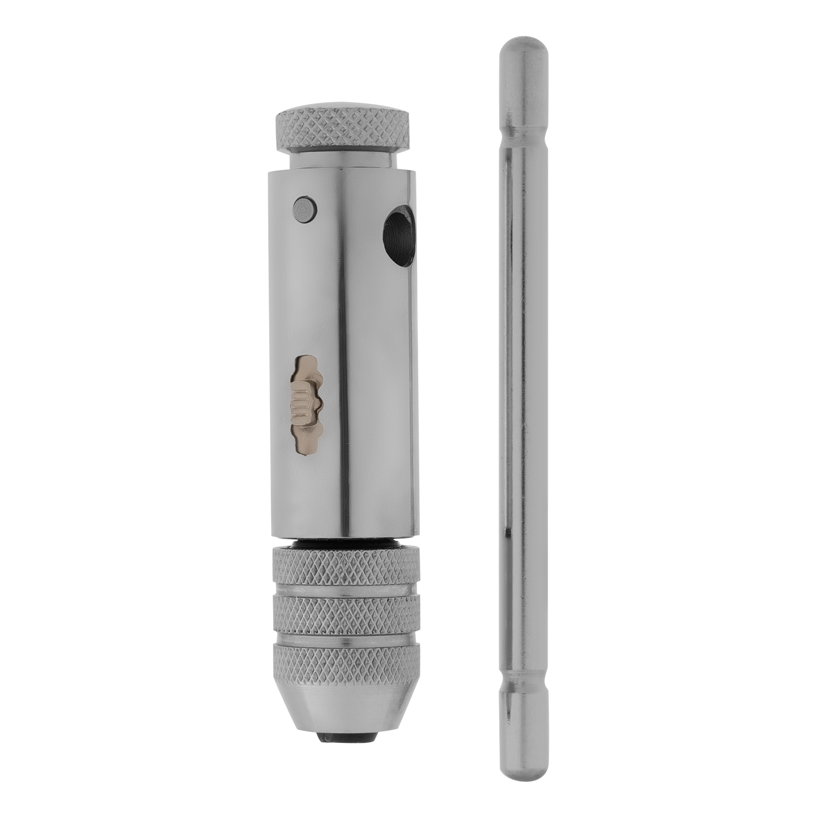- Комфортная работа — наличие трещоточного механизма и функции реверса облегчает нарезание резьбы и извлечение метчика.