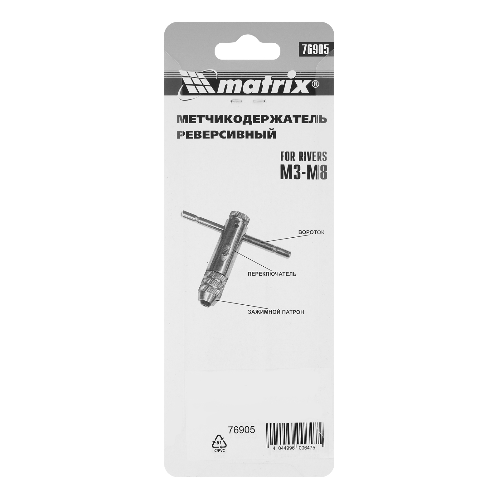 Хромированный вороток Matrix 76905 с трещоткой подходит для метчиков с резьбой М3, М4, М5, М6, М7 и М8 и используется для ручного нарезания внутренней резьбы в отверстиях и цилиндрических деталях. Пригодится при проведении ремонта резьбовых соединений, будет полезен в мастерской или гараже.