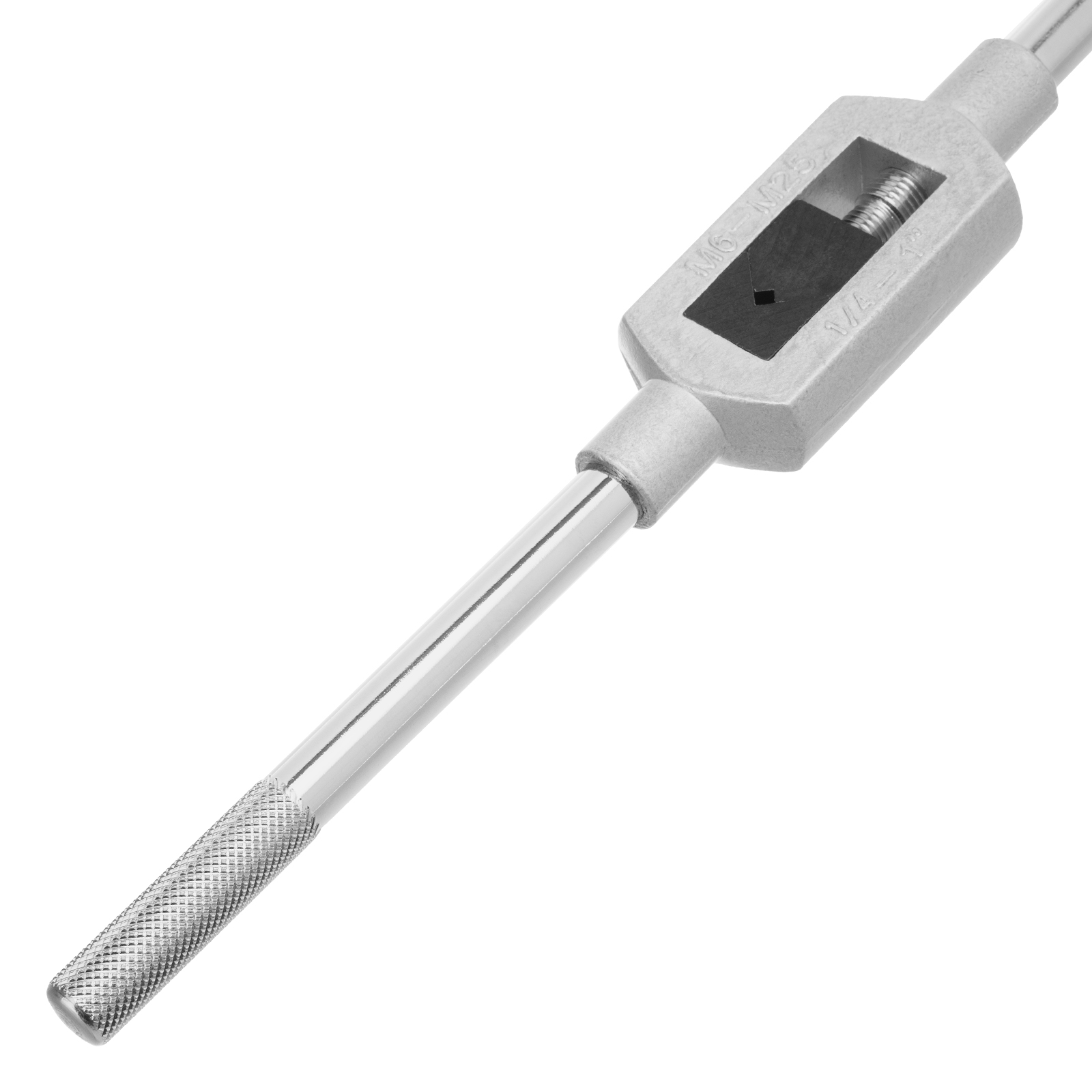 - Надежная фиксация метчика — вороток оснащен регулируемым винтовым механизмом.