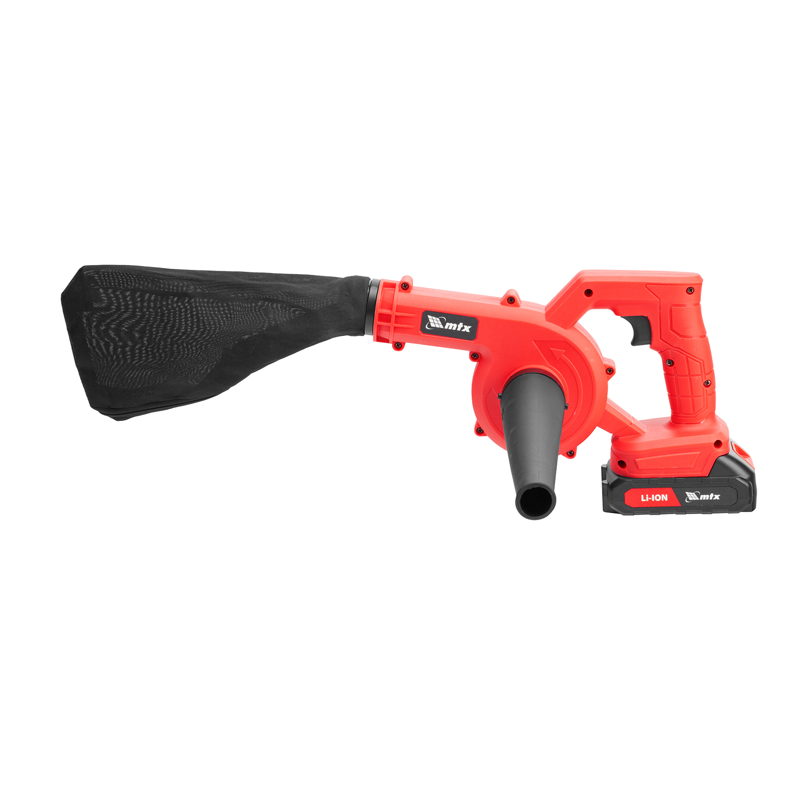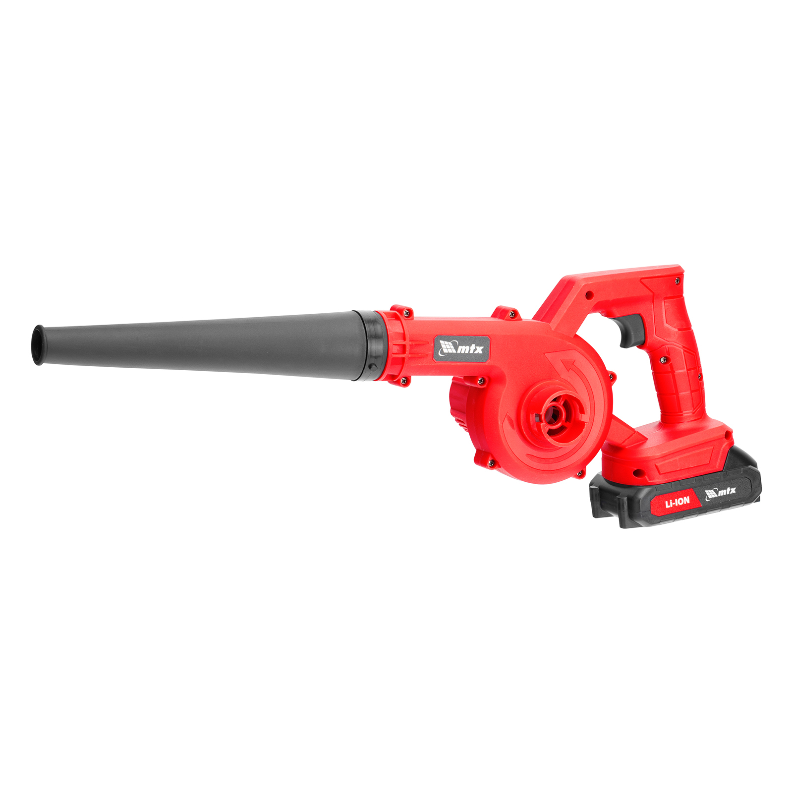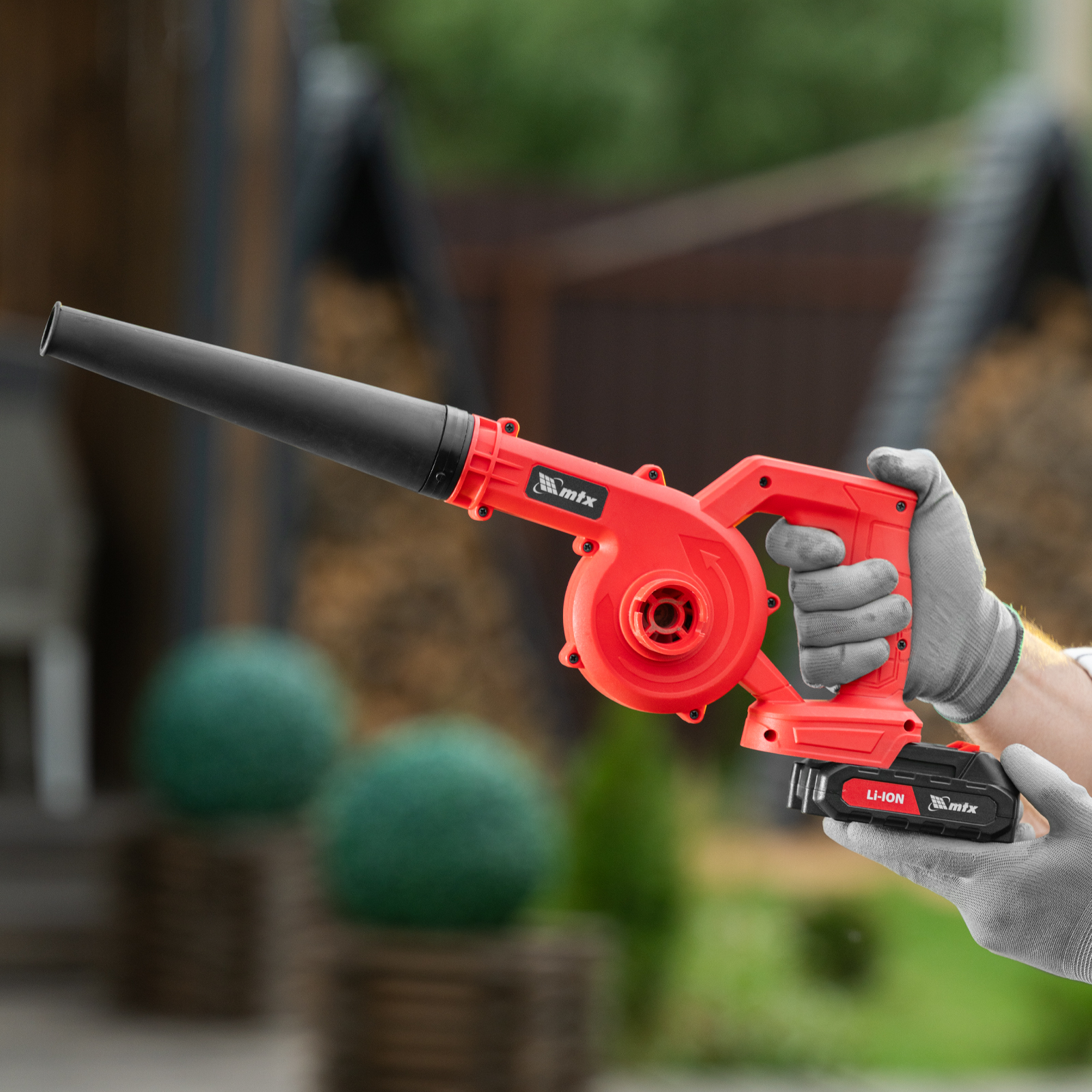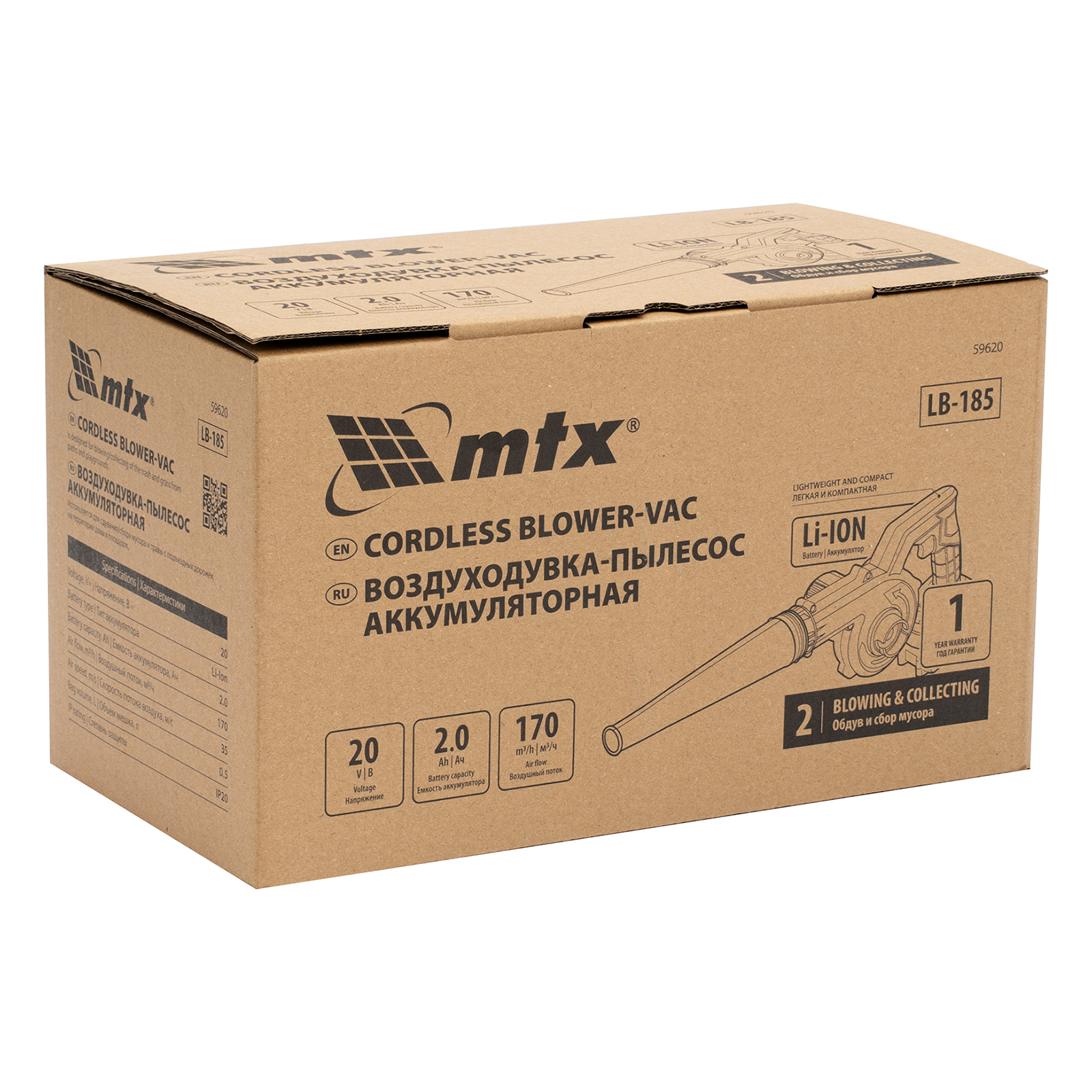 Портативная аккумуляторная воздуходувка-пылесос MTX LB-185 59620 позволяет очистить тропинки, подъездные дорожки, территорию около дома при помощи потока воздуха 170 м³/ч, подаваемого со скоростью 35 м/с. Воспользовавшись функцией пылесоса, можно собрать мусор в мешок объемом 0,5 л. Инструмент работает от аккумулятора 20 В емкостью 2 А·ч, оптимален для бытового применения.