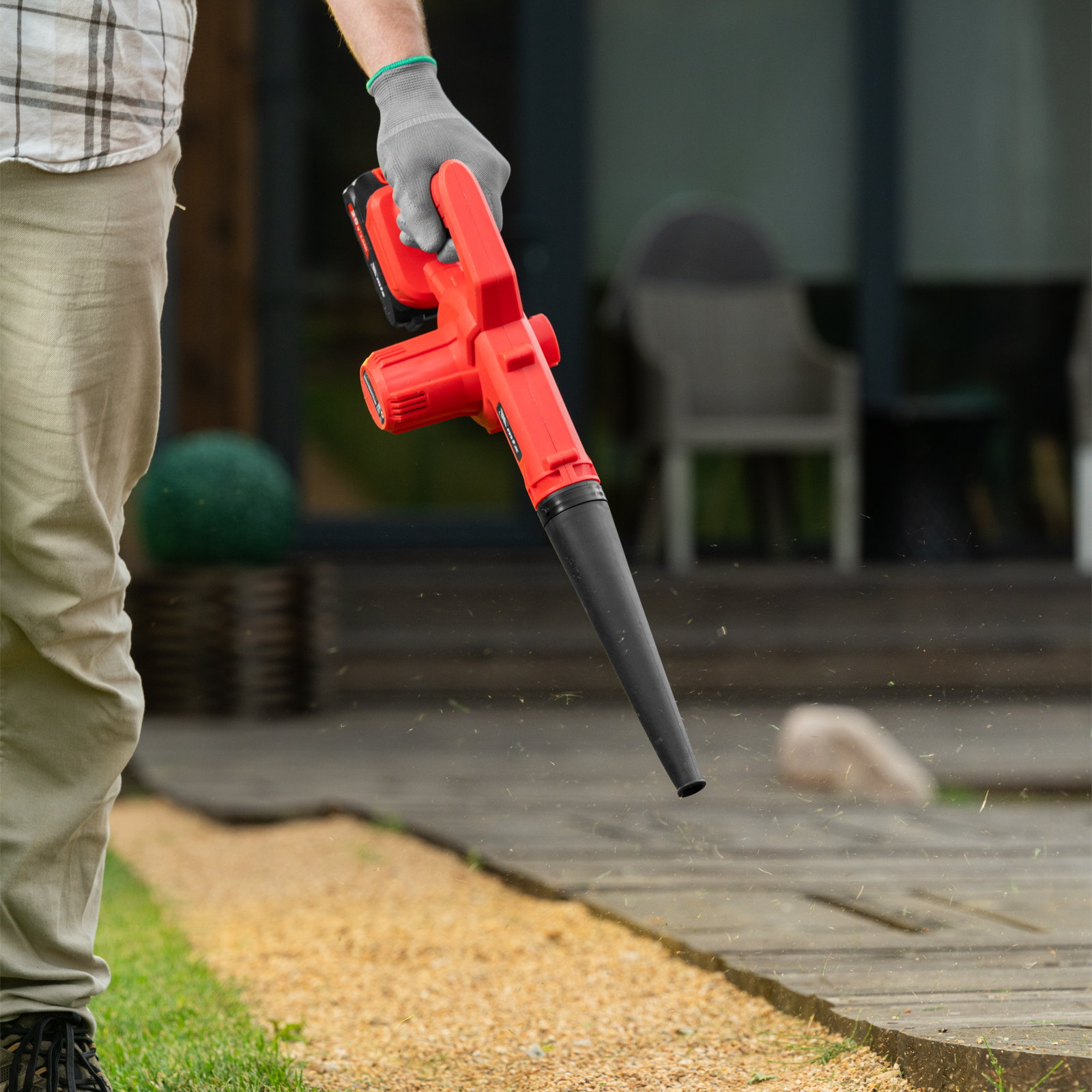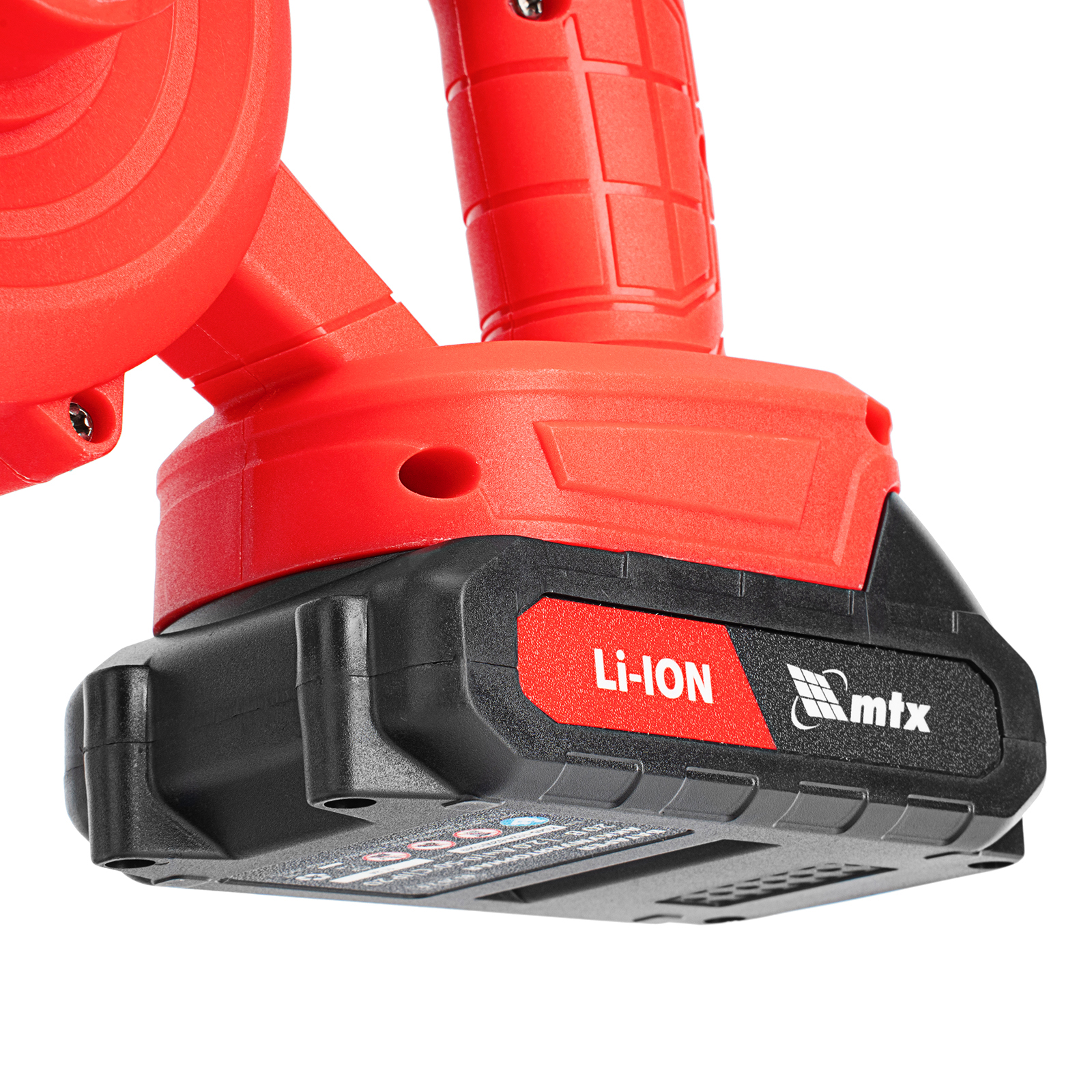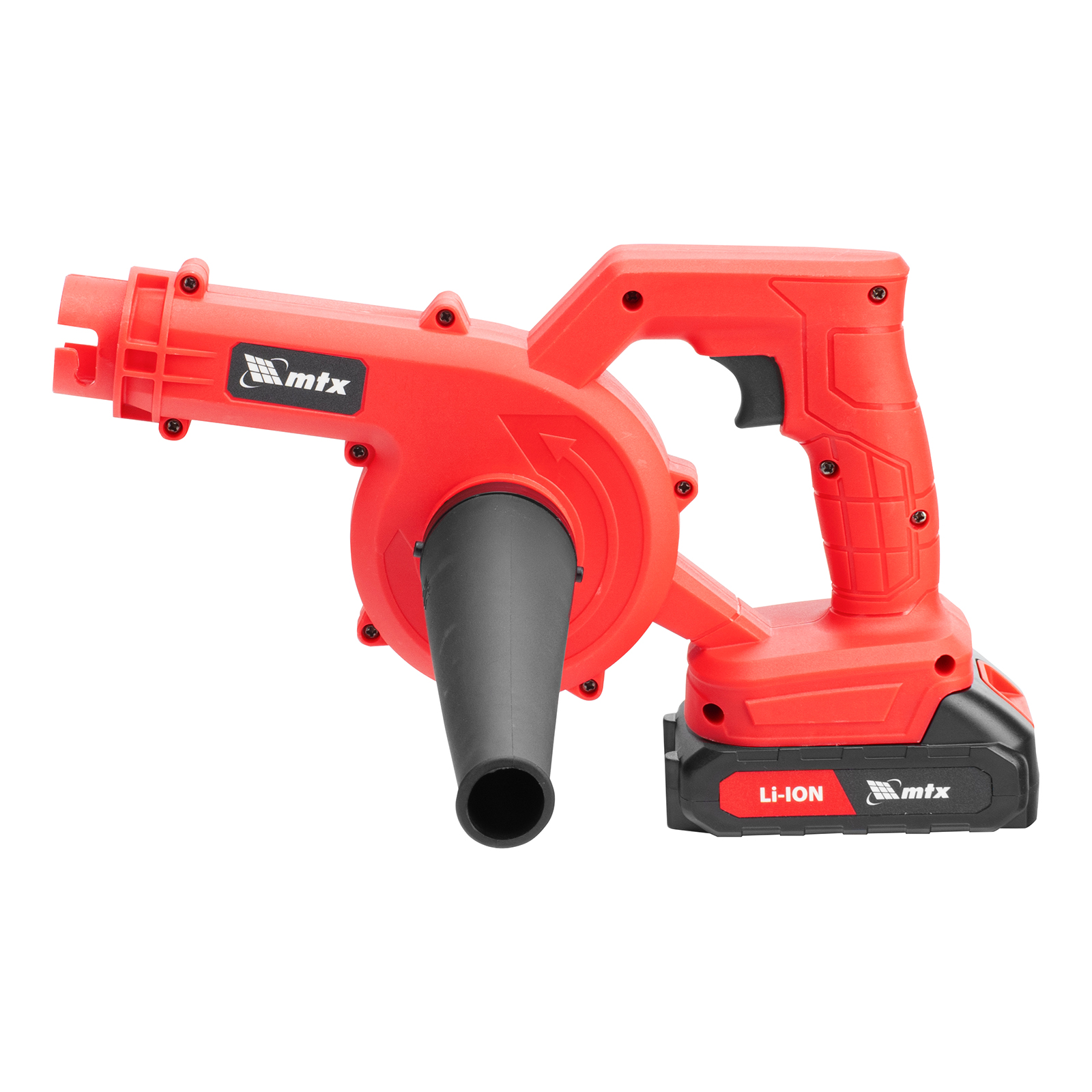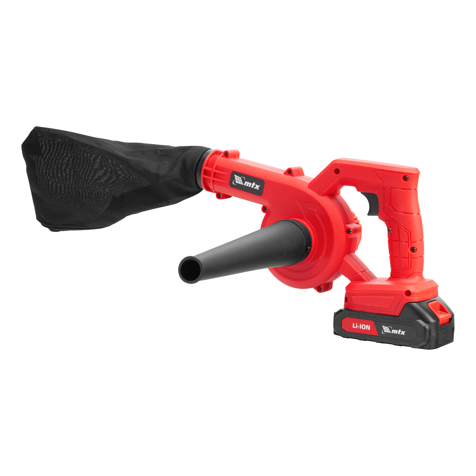 Портативная аккумуляторная воздуходувка-пылесос MTX LB-185 59620 позволяет очистить тропинки, подъездные дорожки, территорию около дома при помощи потока воздуха 170 м³/ч, подаваемого со скоростью 35 м/с. Воспользовавшись функцией пылесоса, можно собрать мусор в мешок объемом 0,5 л. Инструмент работает от аккумулятора 20 В емкостью 2 А·ч, оптимален для бытового применения.