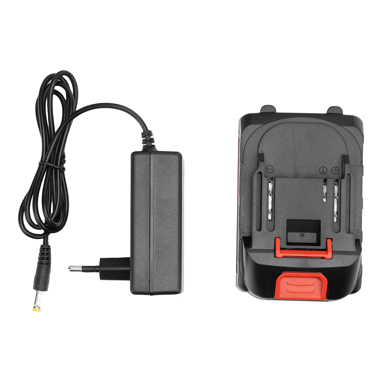 Полная готовность к эксплуатации — в комплект поставки входит 2 аккумулятора, зарядное устройство и мешок для сбора мусора.|Надежная батарея — аккумулятор без эффекта памяти допускает подзарядку без риска потери емкости.|Длительная работа без ощущения усталости — размеры воздуходувки в сборе составляют 500 x 140 x 180 мм, масса с аккумулятором — 1 кг.
