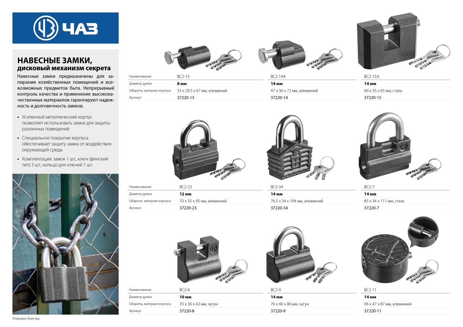 Навесные замки предназначены для запирания хозяйственных помещений и всевозможных предметов быта. Непрерывный контроль качества и применение высококачественных материалов гарантируют надежность и качество замков.
