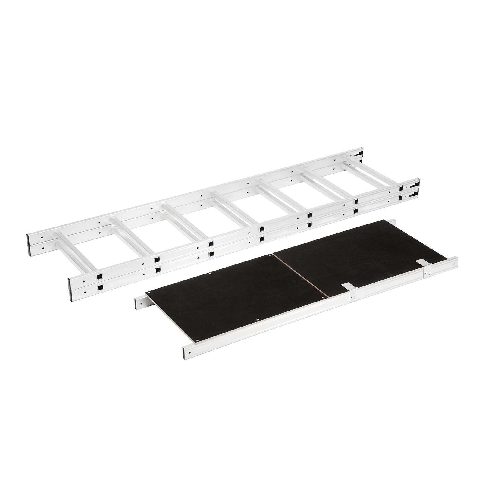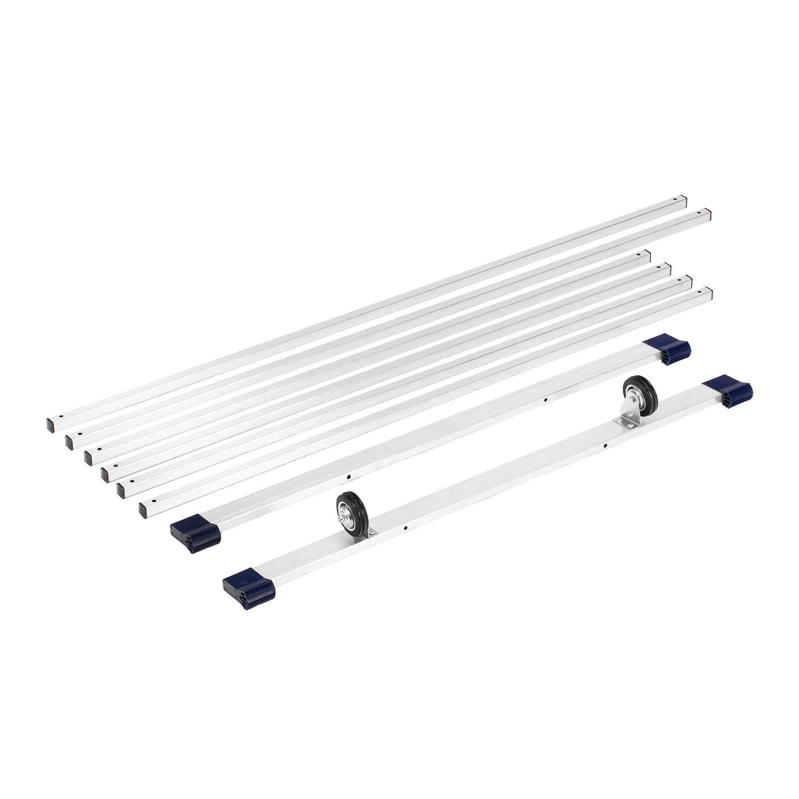 - Прочная и легкая конструкция — опоры и перекладины выполнены из прессованных алюминиевых профилей.