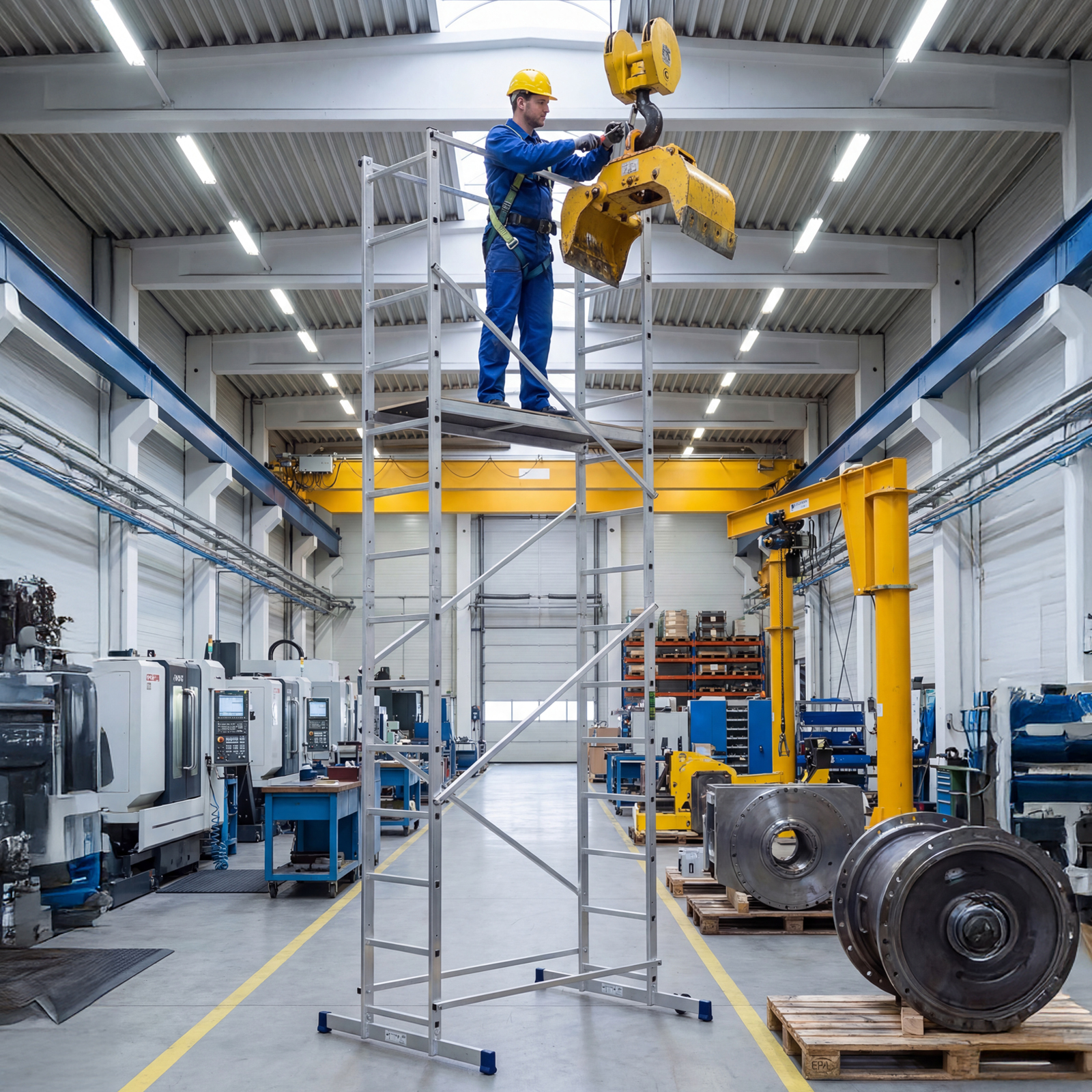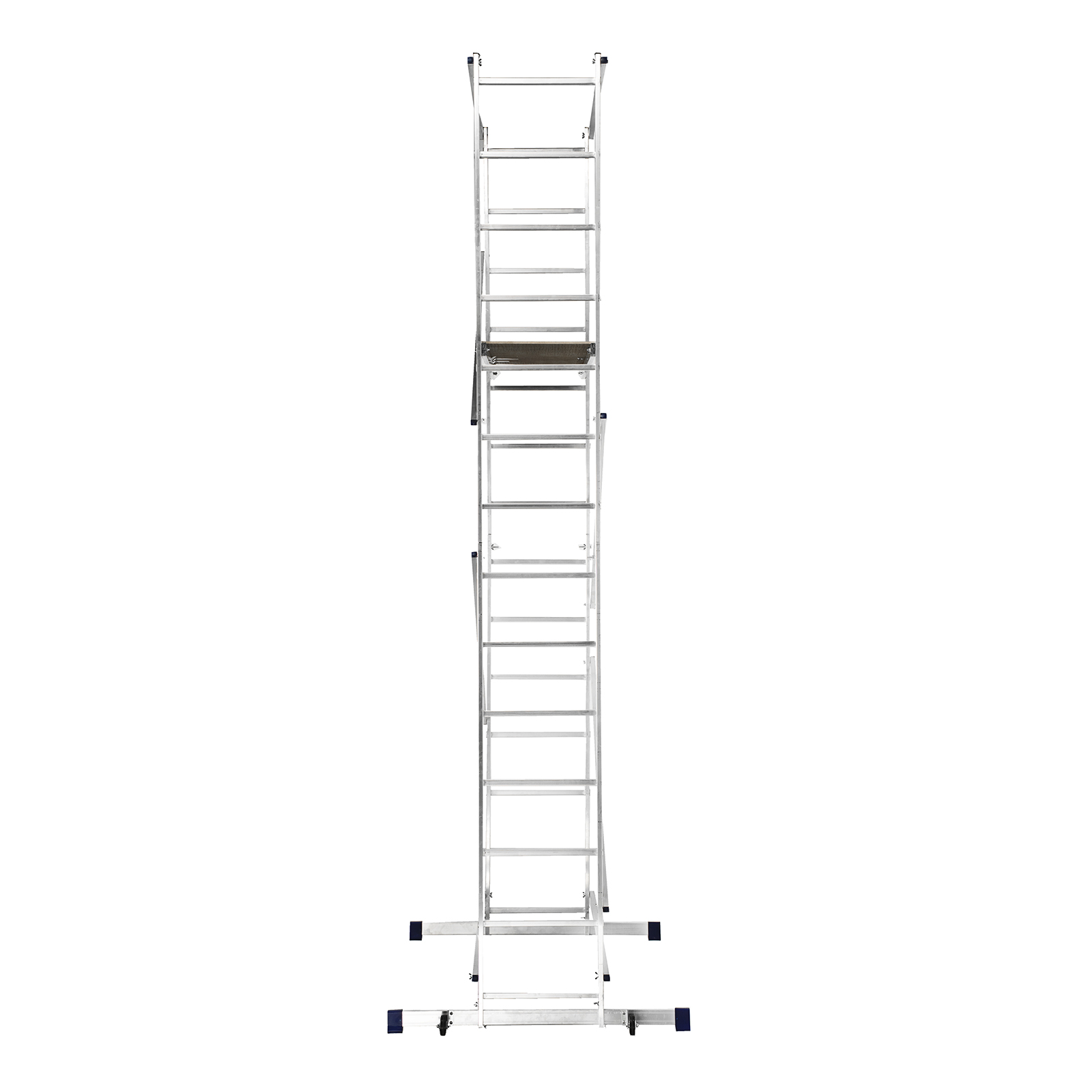 - Удобная работа на лестничных пролетах и наклонных поверхностях — помост можно фиксировать на разных уровнях стоек.