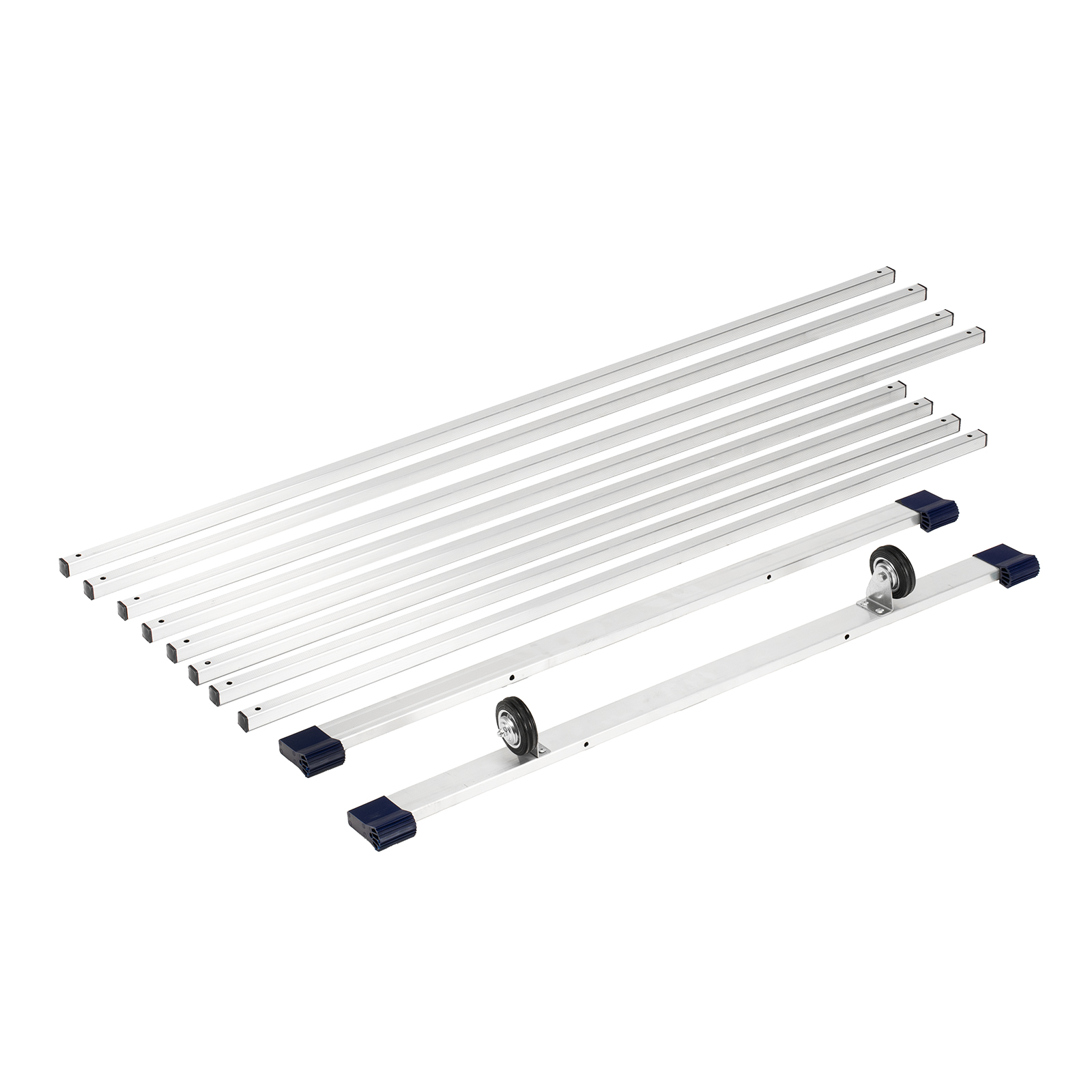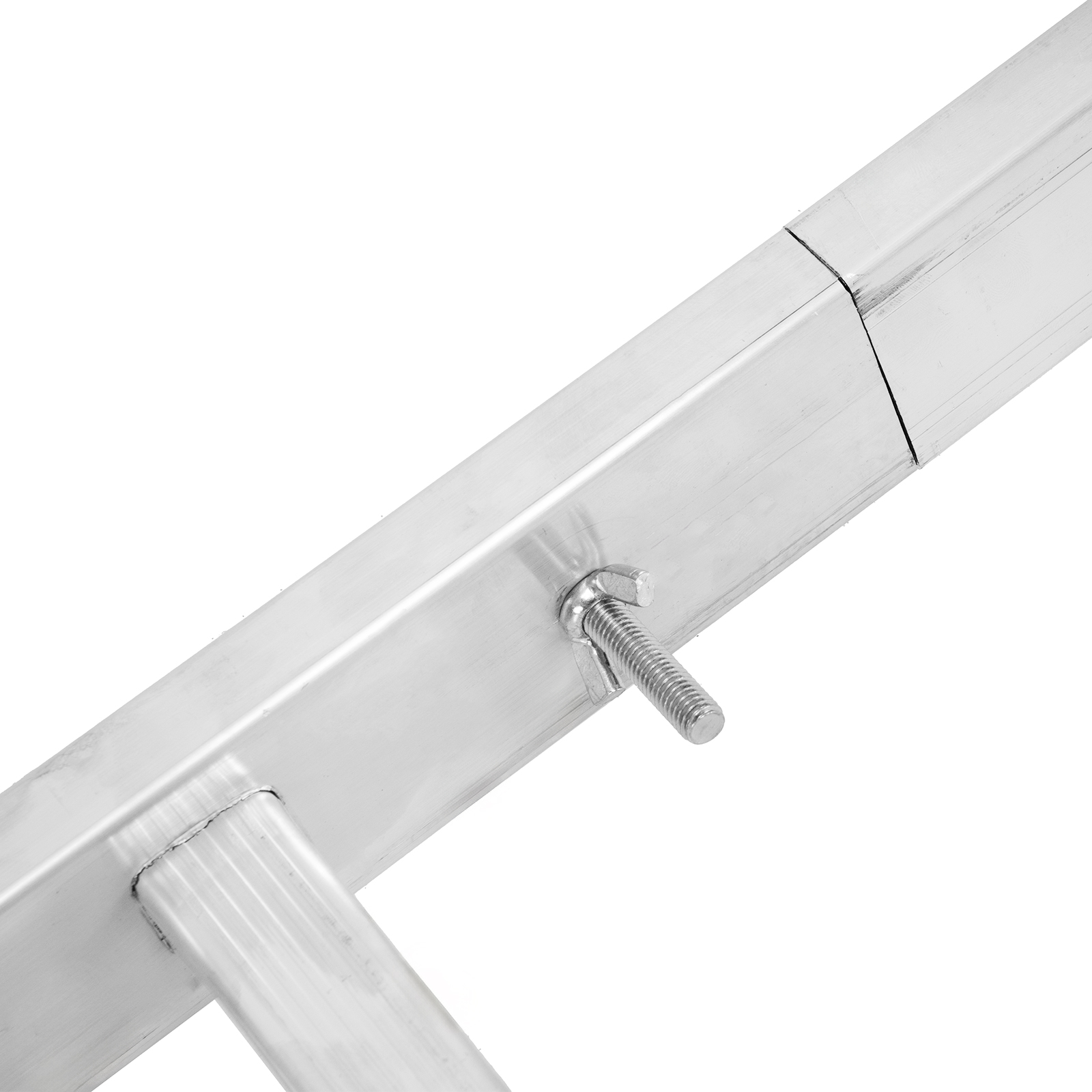 - Прочная и легкая конструкция — опоры и перекладины выполнены из прессованных алюминиевых профилей.
