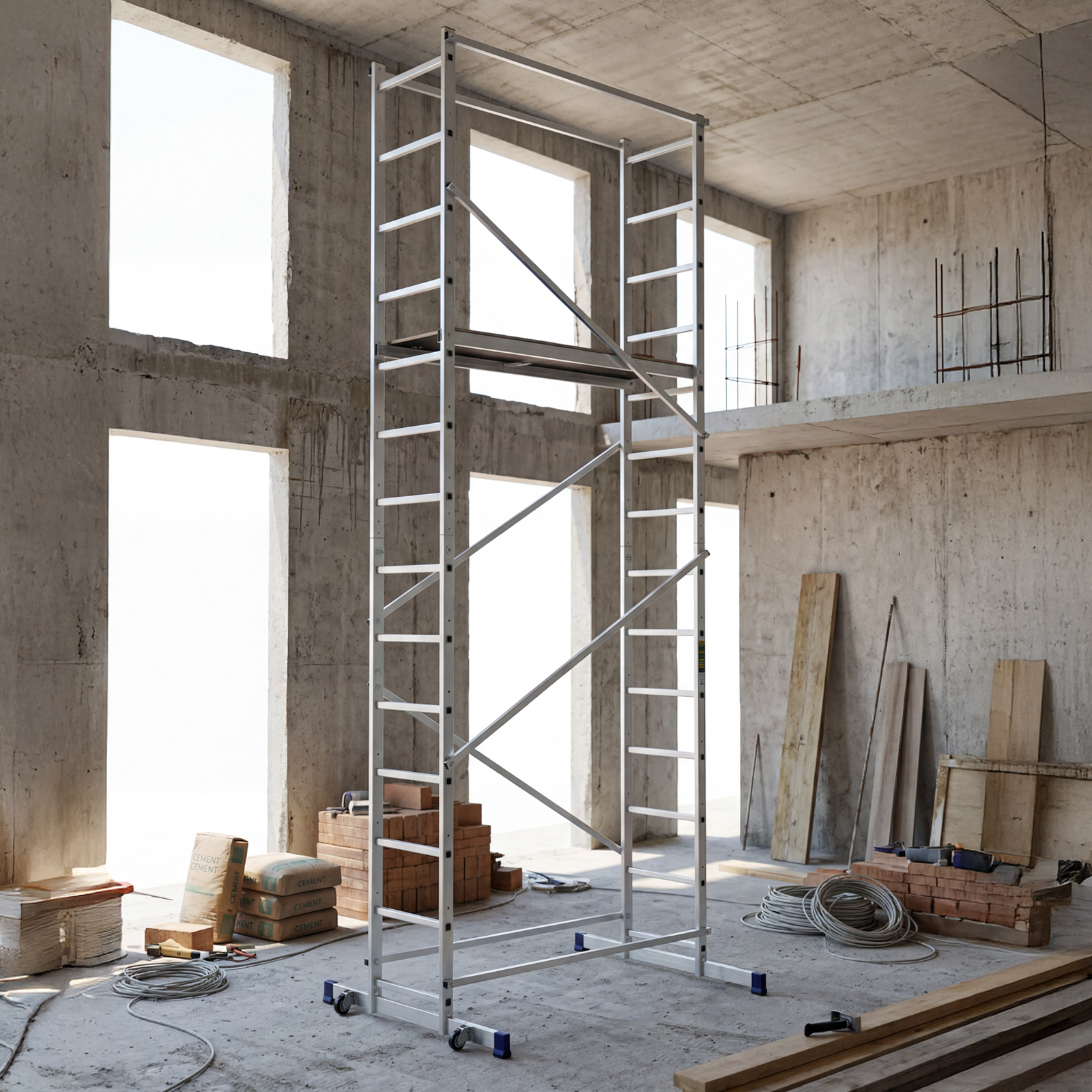- Регулируемые траверсы — вышку можно ставить вплотную к стене.