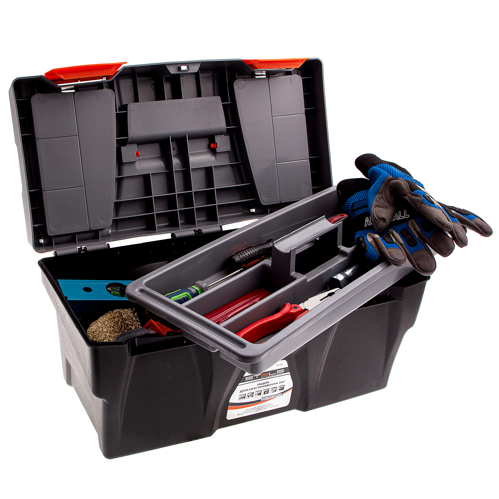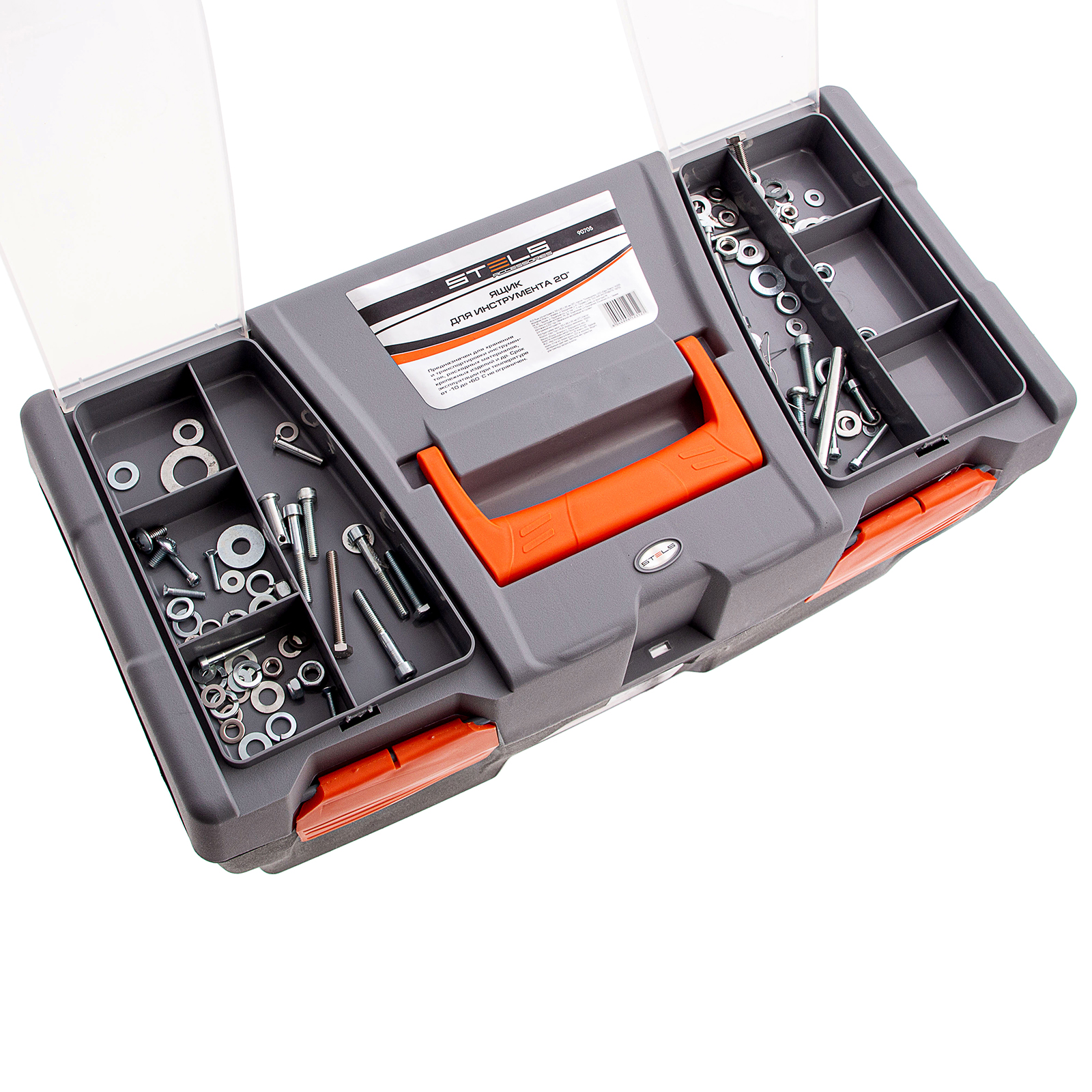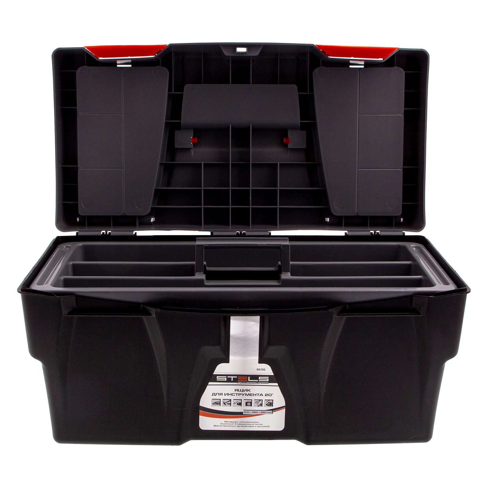 <p>Ящик для инструмента Stels 90705, 20 дюймов, габаритами 500 х 260 х 260 мм, из пластика, предназначен для переноски и хранения инструментов, хозяйственных мелочей, рыболовных снастей. Содержимое не рассыпется, поскольку он надежно закрывается. Встроенные в крышку отделения обеспечивают быстрый доступ к крепежам и другим необходимым предметам. Большой ящик для хранения инструментов будет полезен дома, на даче, в гараже и на рыбалке.</p><h2>Преимущества</h2><ul><li>Ящик выполнен из прочного и легкого пластика, рассчитан на долгий срок службы.</li><li>На крышке предусмотрена ручка, облегчающая транспортировку контейнера.</li><li>В ящике имеется съемный лоток, что позволяет удобно расположить инструменты разного размера, а также крепежи и мелкие детали.</li></ul>