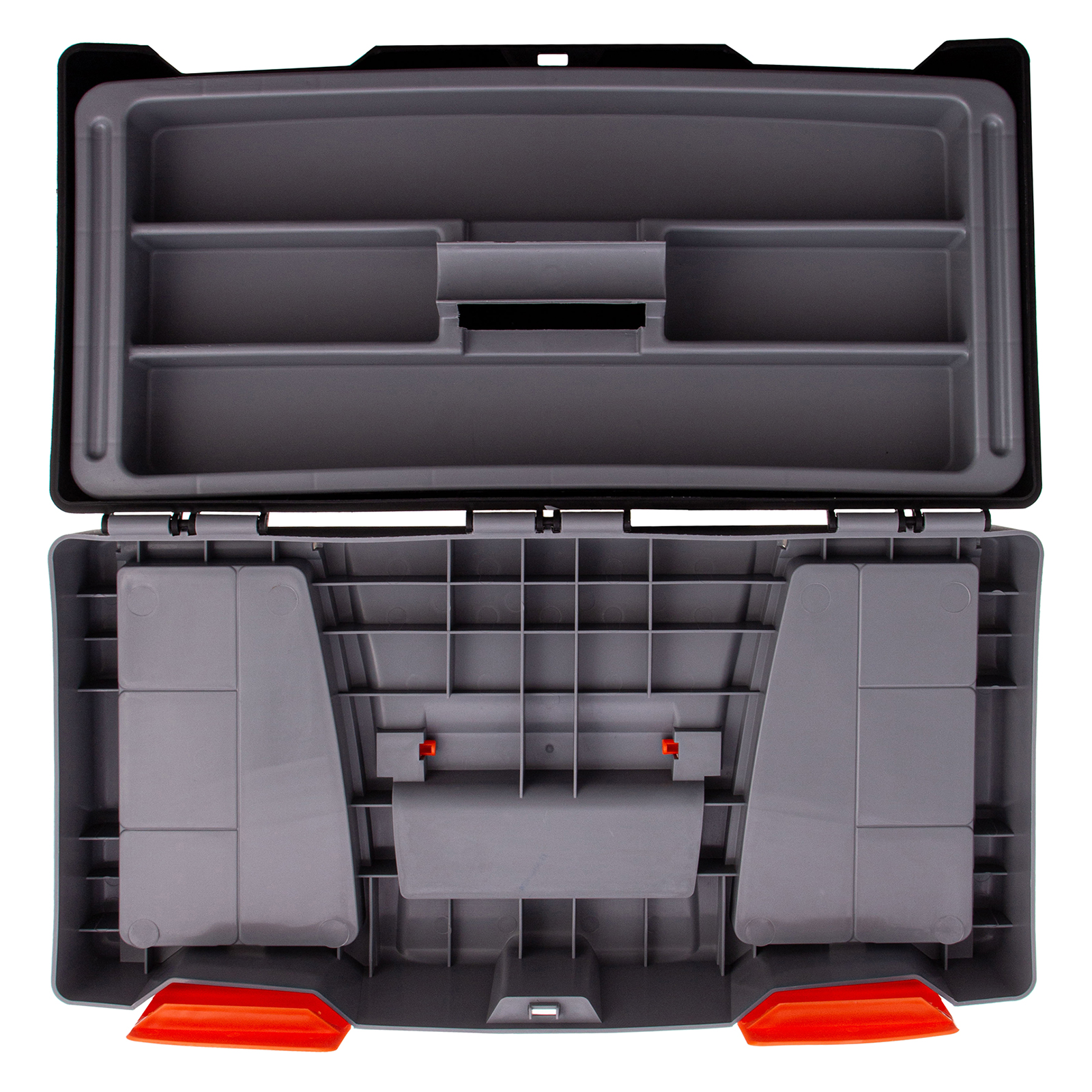 Ящик для инструмента Stels 90705, 20 дюймов, габаритами 500 х 260 х 260 мм, из пластика, предназначен для переноски и хранения инструментов, хозяйственных мелочей, рыболовных снастей. Содержимое не рассыпется, поскольку он надежно закрывается. Встроенные в крышку отделения обеспечивают быстрый доступ к крепежам и другим необходимым предметам. Большой ящик для хранения инструментов будет полезен дома, на даче, в гараже и на рыбалке.