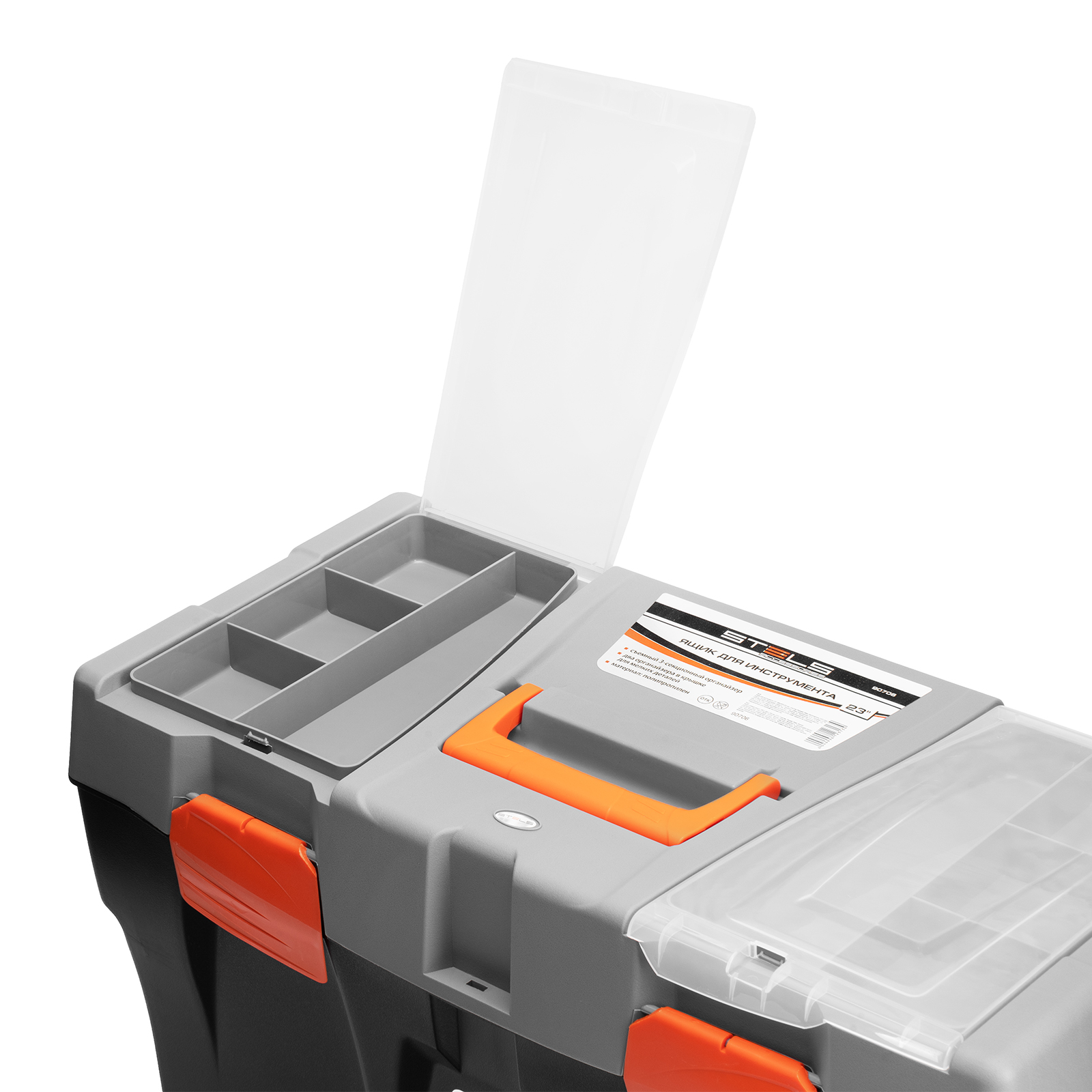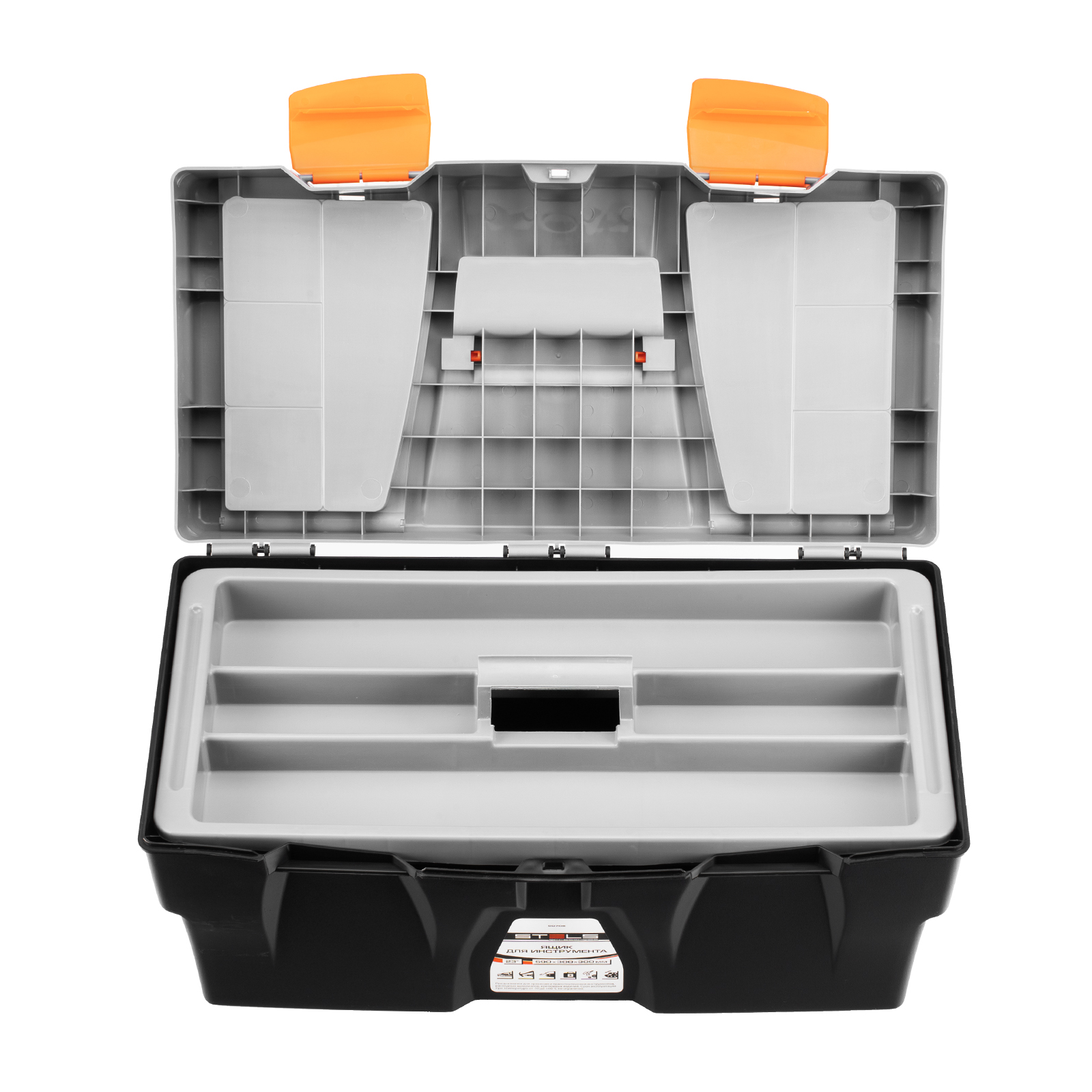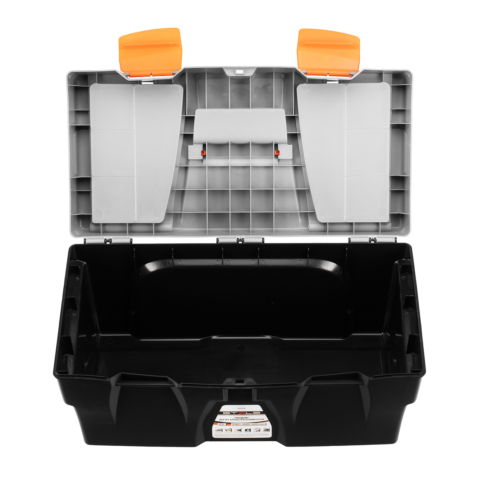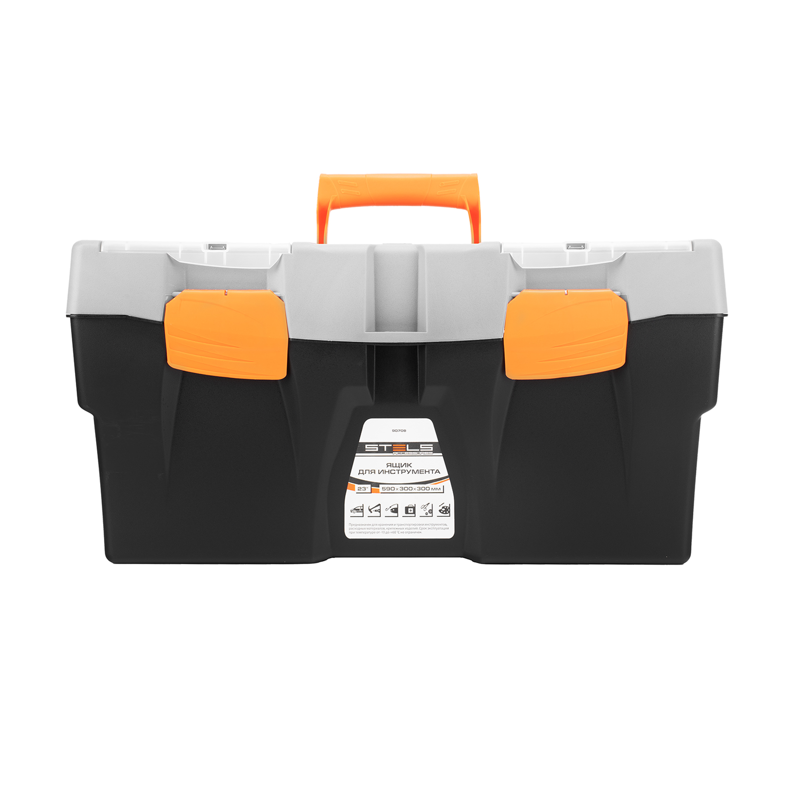 <p>Ящик для инструмента Stels 90706, 23 дюймов, габаритами 590 х 300 х 300 мм, из пластика, предназначен для переноски и хранения инструментов, хозяйственных мелочей, рыболовных снастей. Содержимое не рассыпется, поскольку он надежно закрывается. Встроенные в крышку отделения обеспечивают быстрый доступ к крепежам и другим необходимым предметам. Большой ящик для хранения инструментов будет полезен дома, на даче, в гараже и на рыбалке.</p><h2>Преимущества</h2><ul><li>Ящик выполнен из прочного и легкого пластика, рассчитан на долгий срок службы.</li><li>На крышке предусмотрена ручка, облегчающая транспортировку контейнера.</li><li>В ящике имеется съемный лоток, что позволяет удобно расположить инструменты разного размера, а также крепежи и мелкие детали.</li></ul>