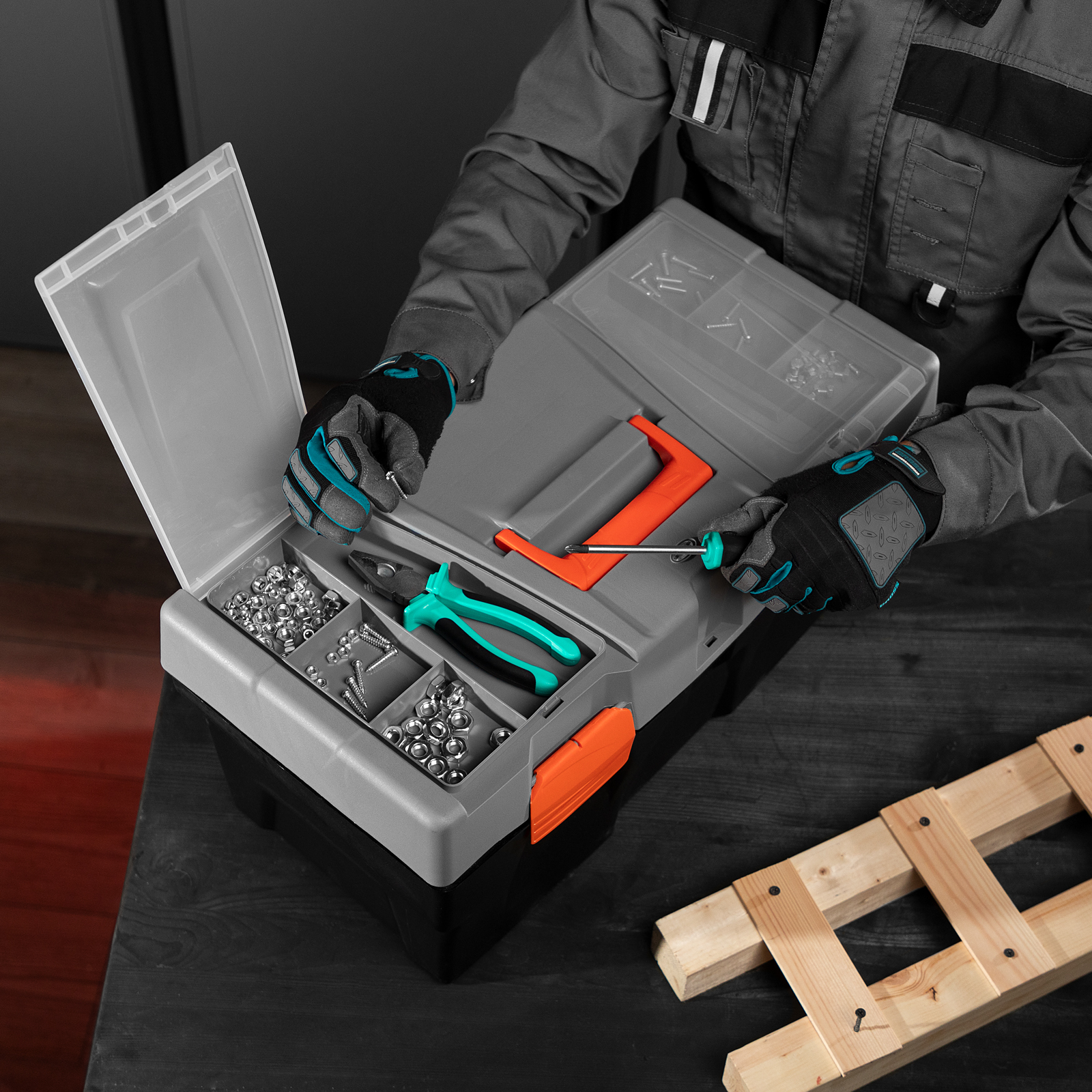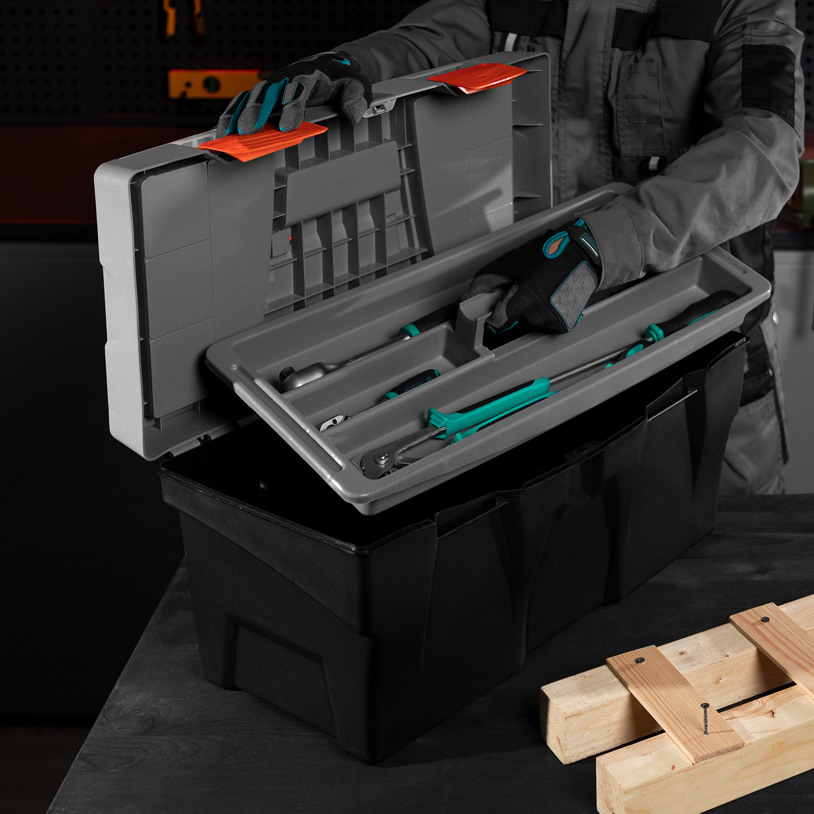 В ящике имеется съемный лоток, что позволяет удобно расположить инструменты разного размера, а также крепежи и мелкие детали.