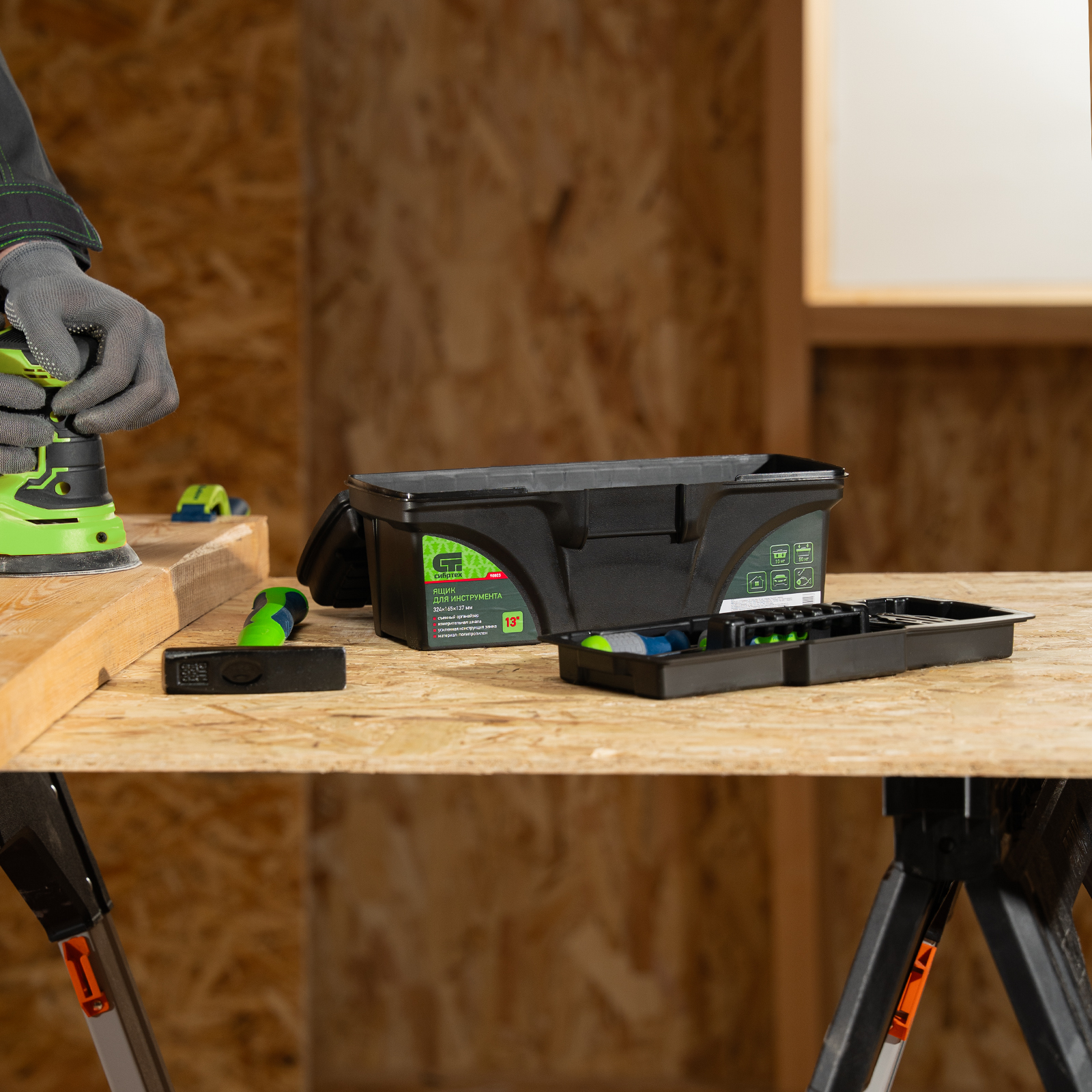 Ящик для инструмента Сибртех 90803 из пластика, размером 324 х 165 х 137 мм (длина 13"), — удобное вместилище для инструментов, бытовых мелочей, рыболовных снастей. На крышку нанесена измерительная шкала в сантиметрах и дюймах, поэтому можно проводить измерения, даже если под рукой нет линейки. Ящик пригодится в поездке, на рыбалке, а также дома, на даче или в гараже.