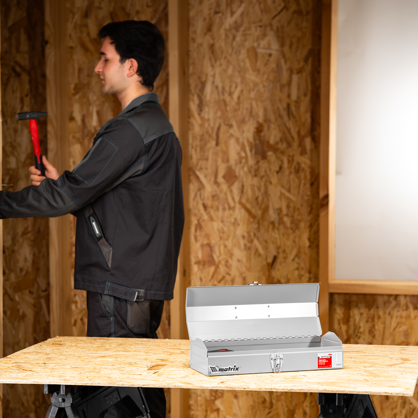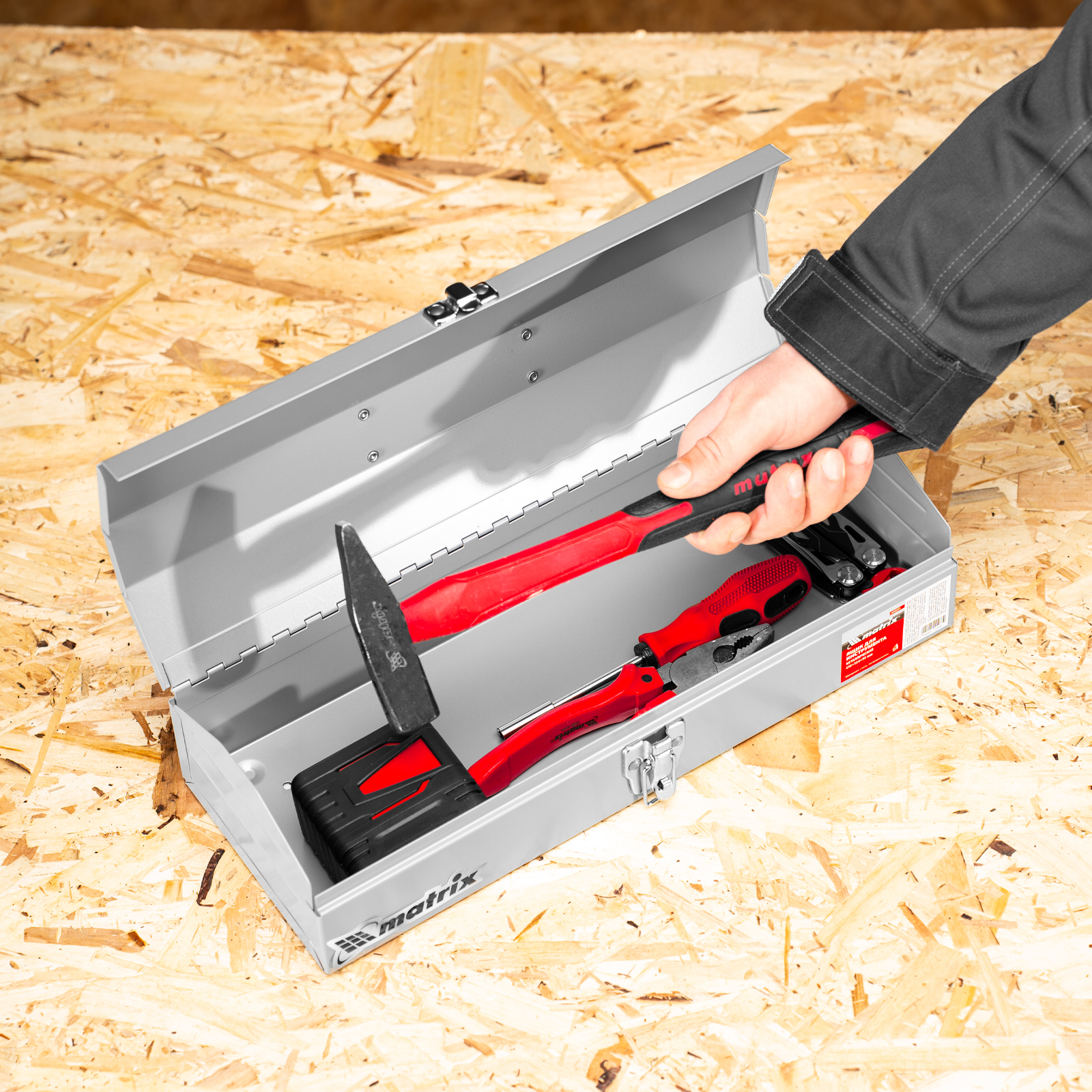 Металлический ящик Matrix 906035 размером 410 х 154 х 95 мм предназначен для хранения инструментов и хозяйственных мелочей. Позволяет освободить место в шкафу, кладовке или гараже. Бокс будет полезен автолюбителю или домашнему мастеру, а также рыбаку для размещения снастей.