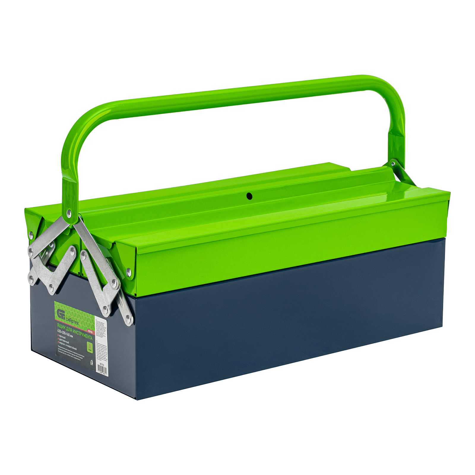 <p>Металлический ящик Сибртех 90750 размером 430 х 200 х 160 мм, с тремя секциями, используется для размещения инструментов, хозяйственных мелочей, крепежных элементов или рыболовных принадлежностей. Предметы удобно раскладываются по отделениям, что обеспечивает порядок во время их хранения и транспортировки. Ящик пригодится в поездке, на рыбалке, а также дома, на даче или в гараже.</p><h2>Преимущества</h2><ul><li>Вместительность — благодаря выдвижным секциям в ящике помещается много предметов.</li><li>Защита от коррозии — металлический корпус покрыт порошковой эмалью.</li><li>Быстрый поиск нужного предмета — ящик легко раскладывается.</li><li>Поворотная ручка — удобно размещать и извлекать инструменты.</li></ul>