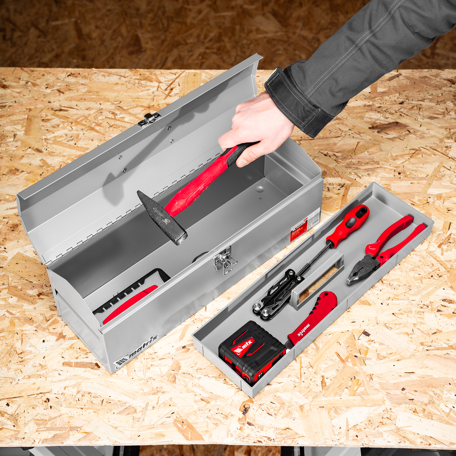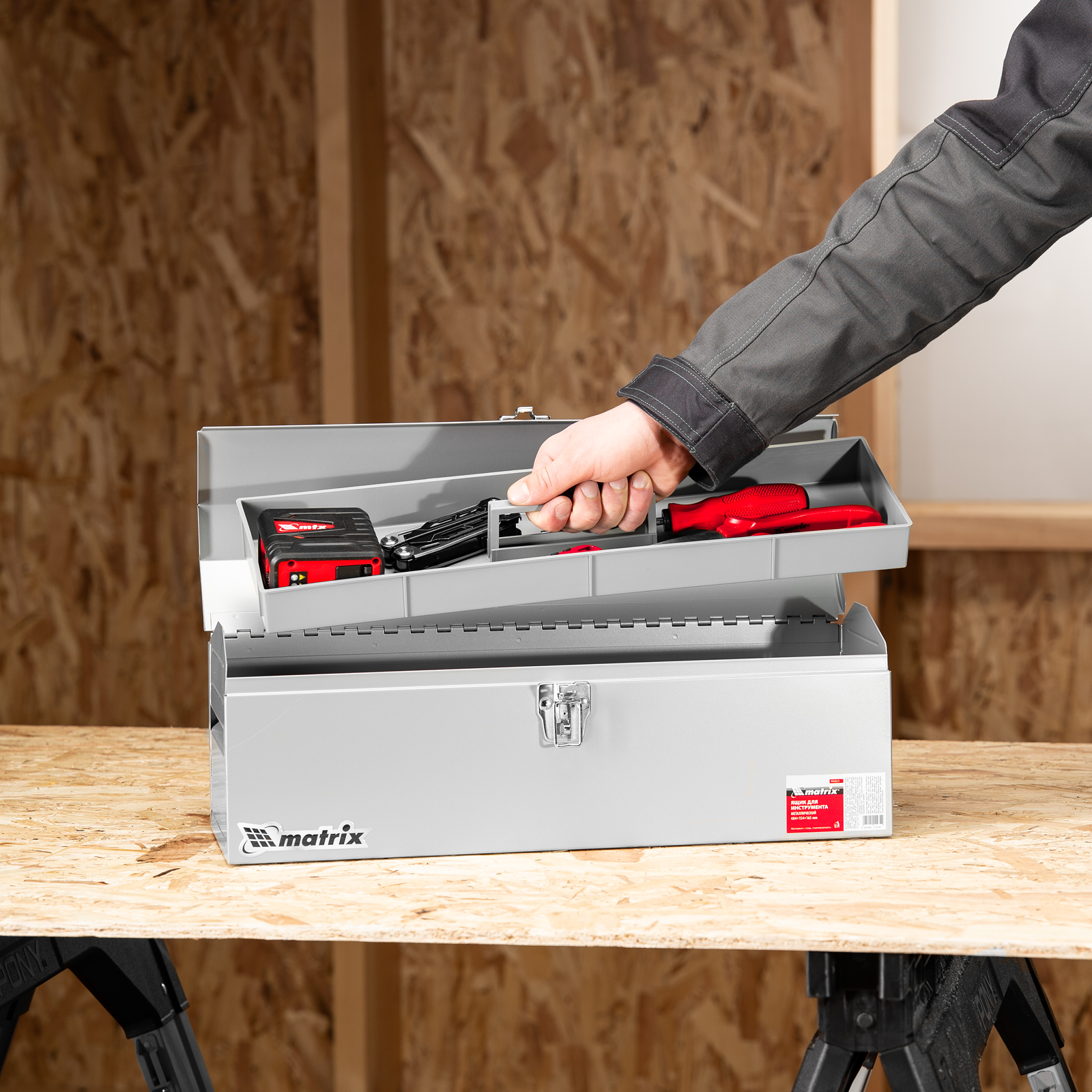 Металлический ящик Matrix 906025 размером 484 х 154 х 165 мм предназначен для хранения инструментов и хозяйственных мелочей. Позволяет освободить место в шкафу, кладовке или гараже. Бокс будет полезен автолюбителю или домашнему мастеру, а также рыбаку для размещения снастей.