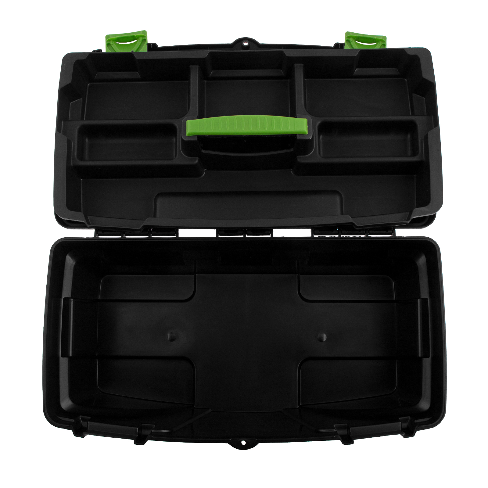 Трехрядные петли усиливают конструкцию замка и верхней крышки, поэтому в ящик можно положить много инструментов.