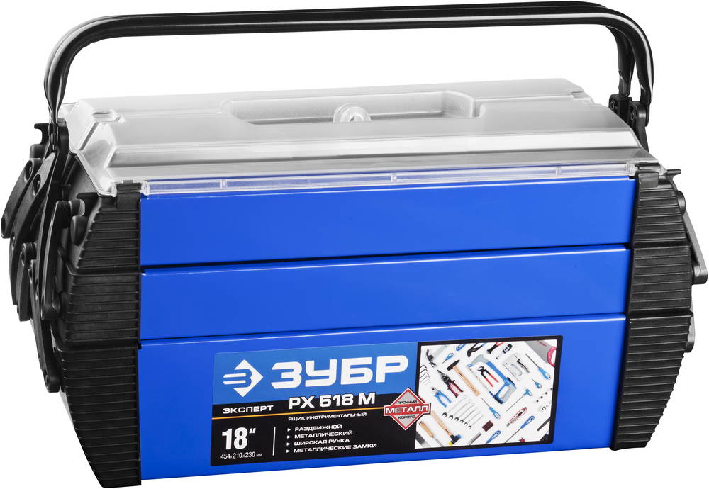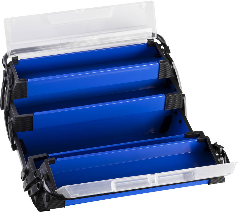 Ящик с раздвижными полками позволяет организовать удобное удобное хранение инструмента и доступ к нему. Широкая ручка помогает сместить центр тяжести ящика, что обеспечивает удобство и комфорт переноски