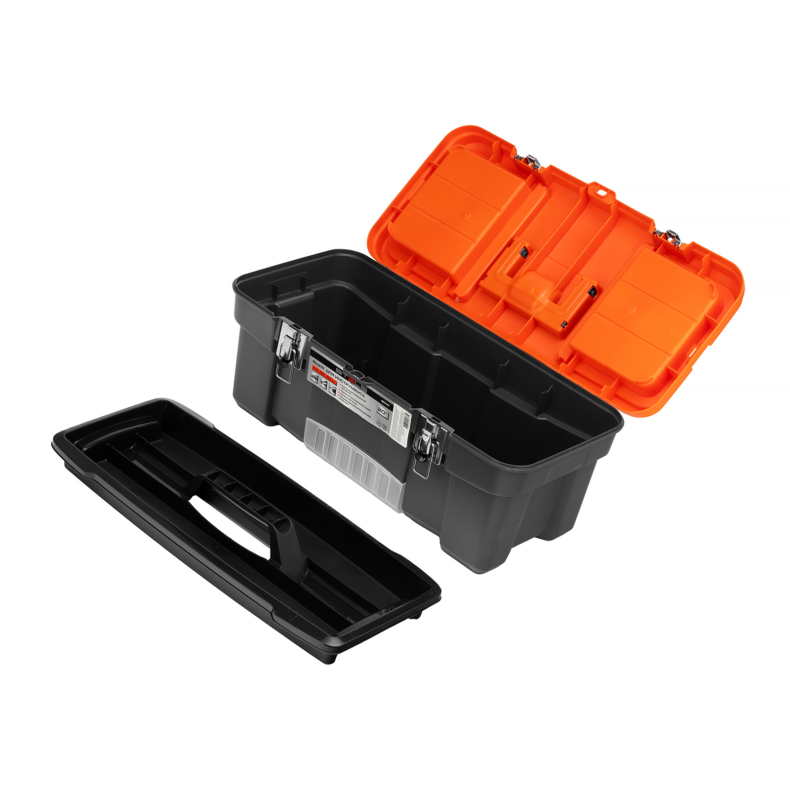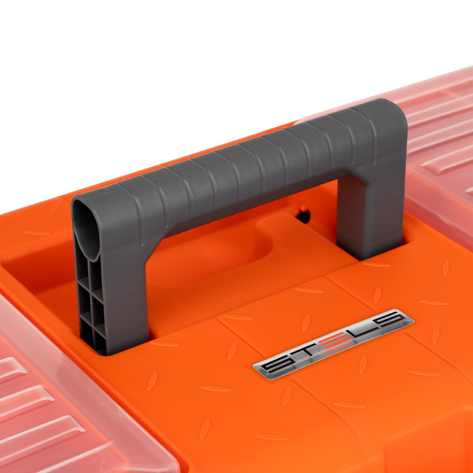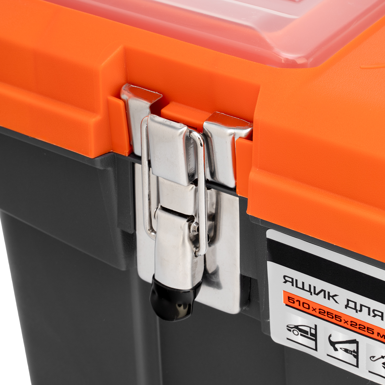 Ящик для инструмента Stels 90747 размером 20" (510 х 255 х 225 мм), с металлическими замками, — альтернатива коробке для инструментов. В нем можно расположить ручной инструмент, крепеж, хозяйственные мелочи, а также рыболовные снасти. В крышке имеются встроенные органайзеры, внутри ящика — выкидной лоток с отсеками для мелких деталей, что увеличивает функциональность изделия. Ящик удобно брать в поездки, также он пригодится дома, на даче или в гараже.