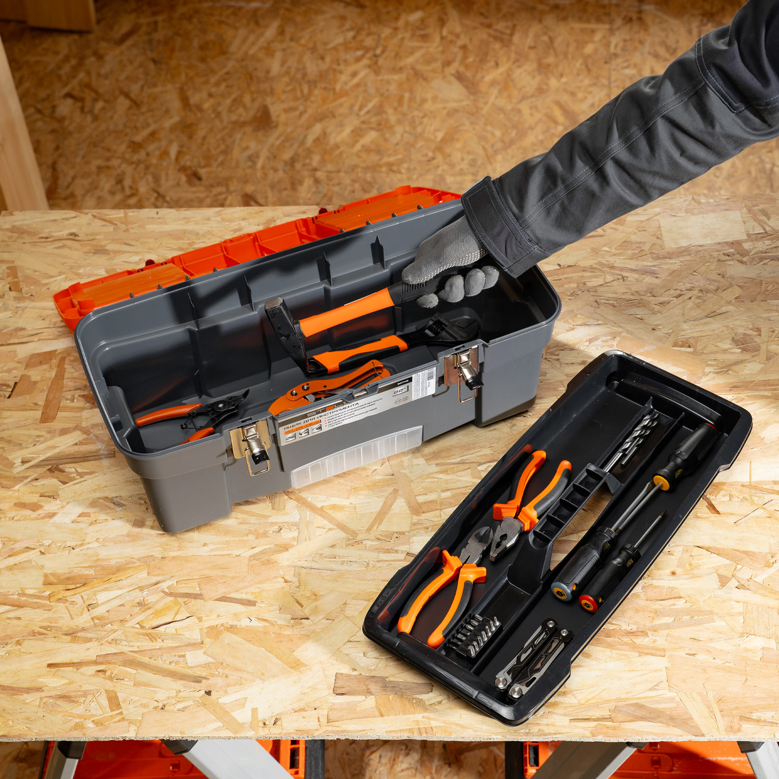 Упорядоченное хранение инструментов — съемный лоток с ручкой позволяет рационально организовать внутреннее пространство.