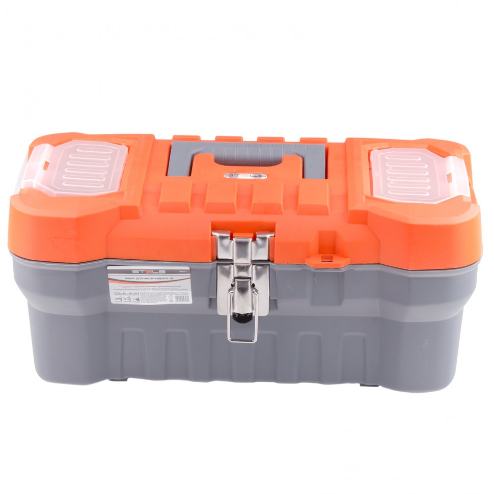 Ящик для инструмента с металлическими замками Stels 90711, 16 дюймов, 410 х 210 х 175 мм, — альтернатива коробке для инструментов. В нем можно расположить ручной инструмент, крепежи, хозяйственные мелочи, а также рыболовные снасти. В крышке имеются встроенные органайзеры для мелких деталей, что увеличивает функциональность ящика. Его удобно брать в поездки, также ящик пригодится дома, на даче или в гараже.
