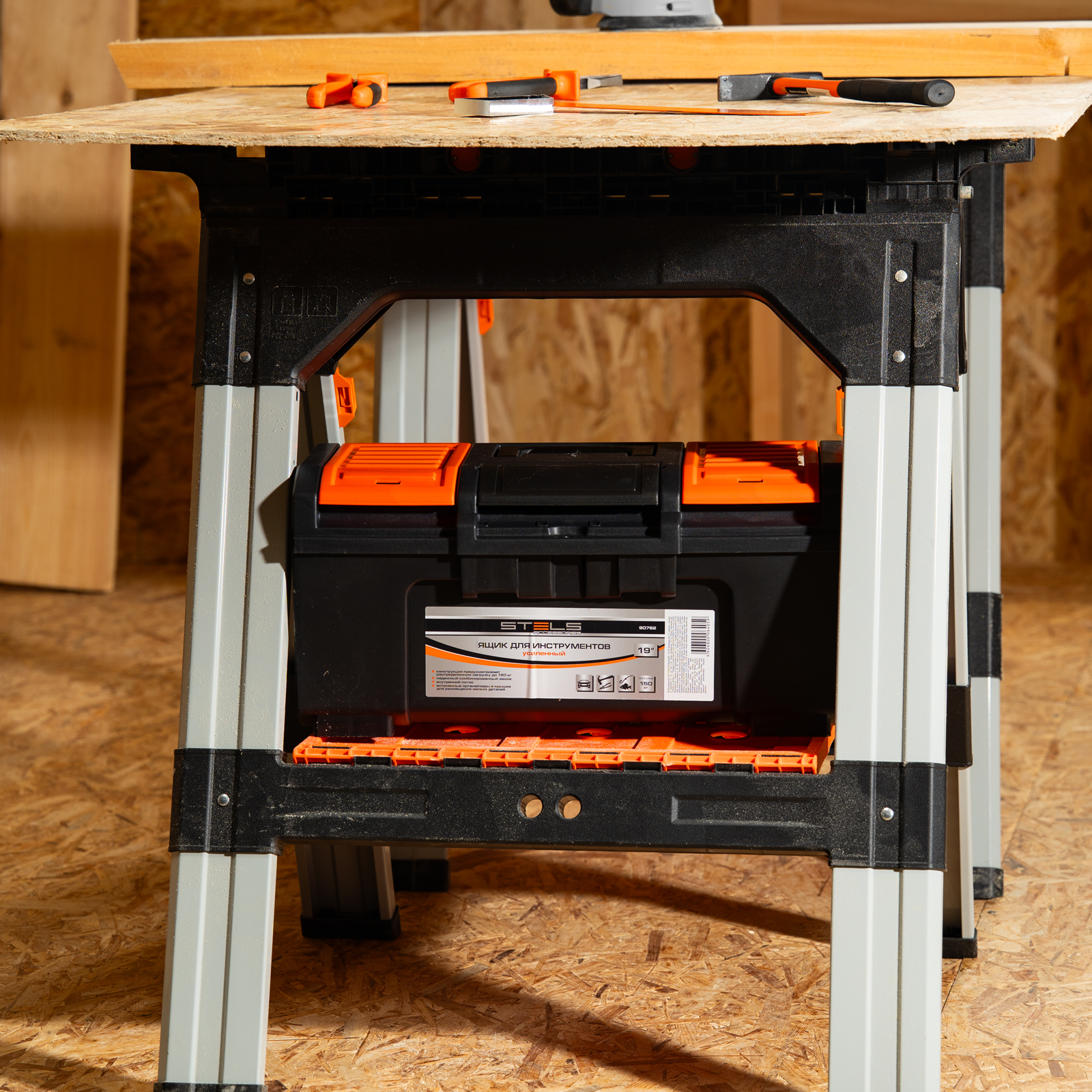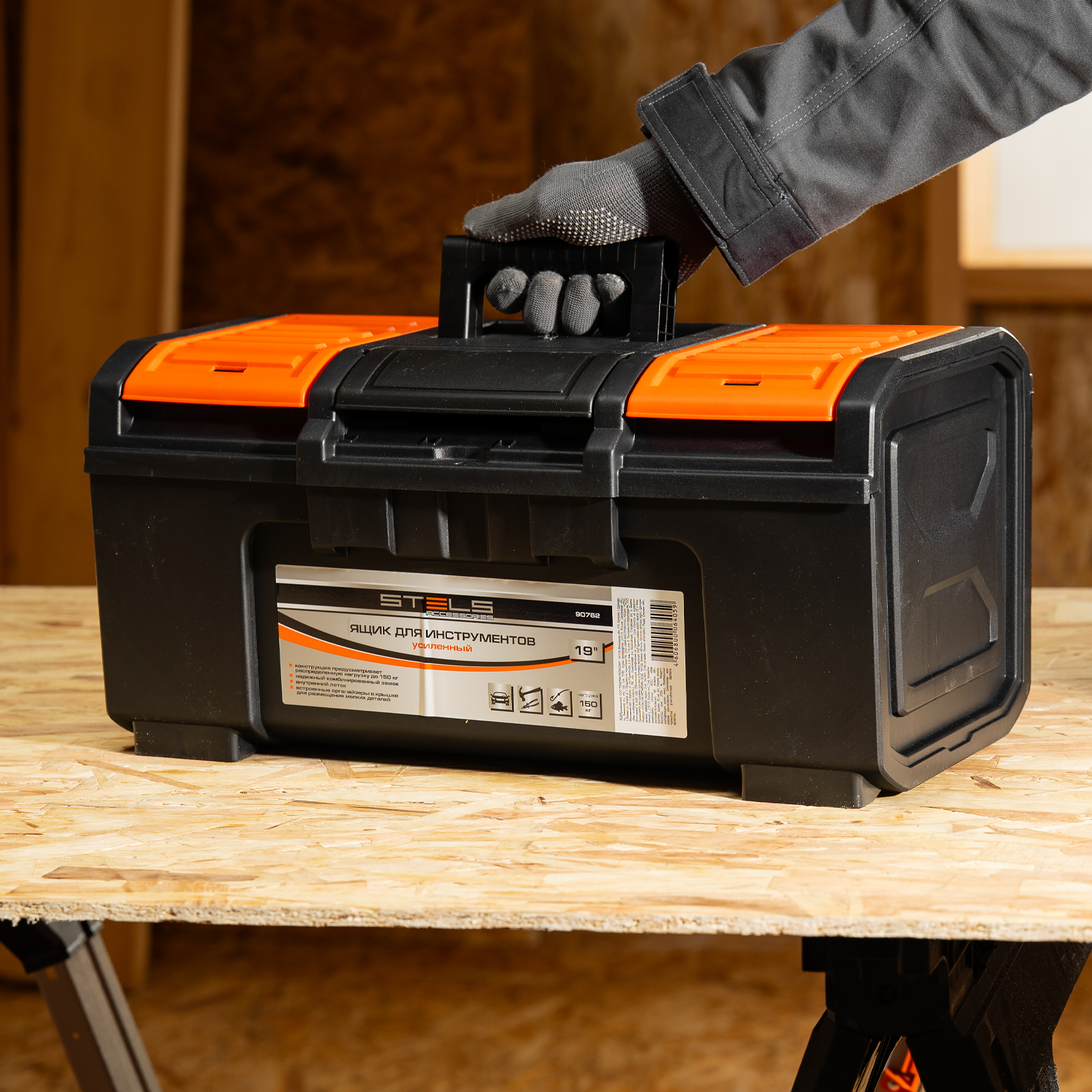 Усиленный ящик для инструментов Stels 90762 длиной 19" используется для хранения и транспортировки ручного и электроинструмента, а также хозяйственных мелочей или рыболовных принадлежностей. Заменяет коробку для инструментов, а также может служить рыболовным ящиком. Пригодится дома, в поездке, а также в гараже или на даче.