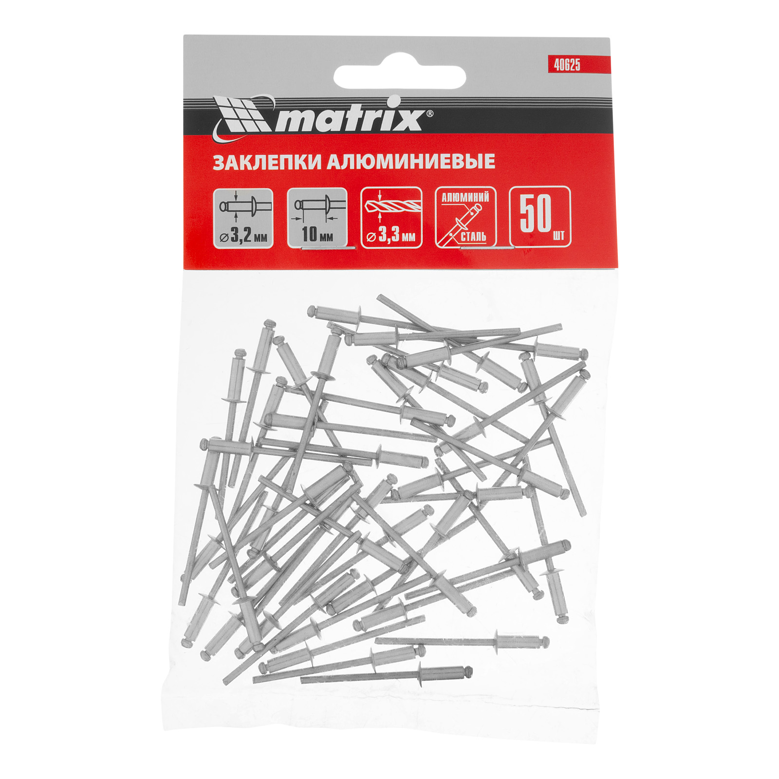 Заклепки Matrix 40625 размером 3,2 х 10 мм, 50 шт. в упаковке, предназначены для соединения листовых заготовок. Обеспечивают надежную фиксацию материалов даже при наличии доступа только с одной стороны. Используются в строительстве домов, для возведения заборов из профлиста, при производстве оборудования, будут полезны в домашней мастерской.