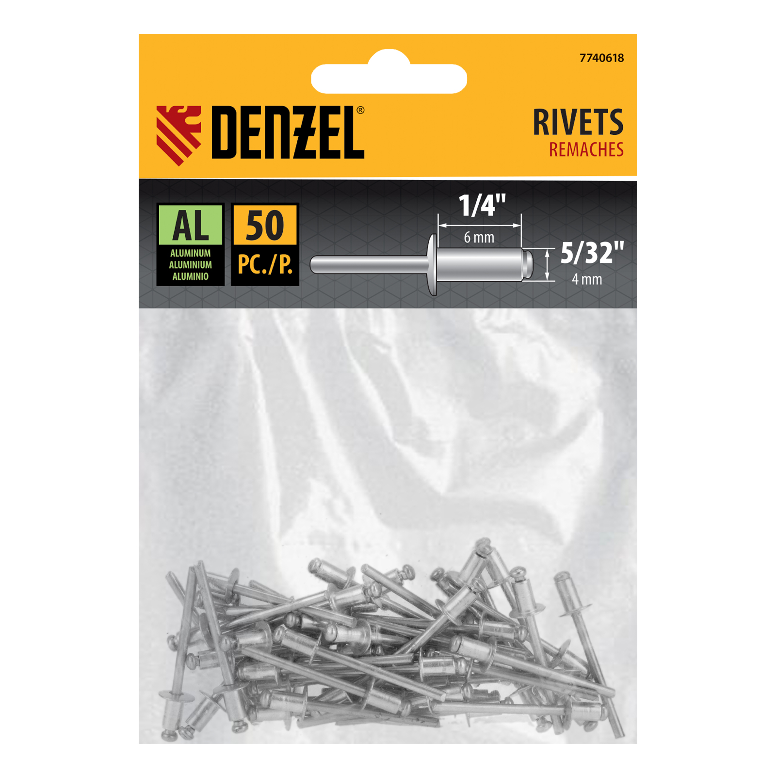 Заклепки алюминиевые, 5/32"-1/4", 4 x 6 мм, 50 шт Denzel