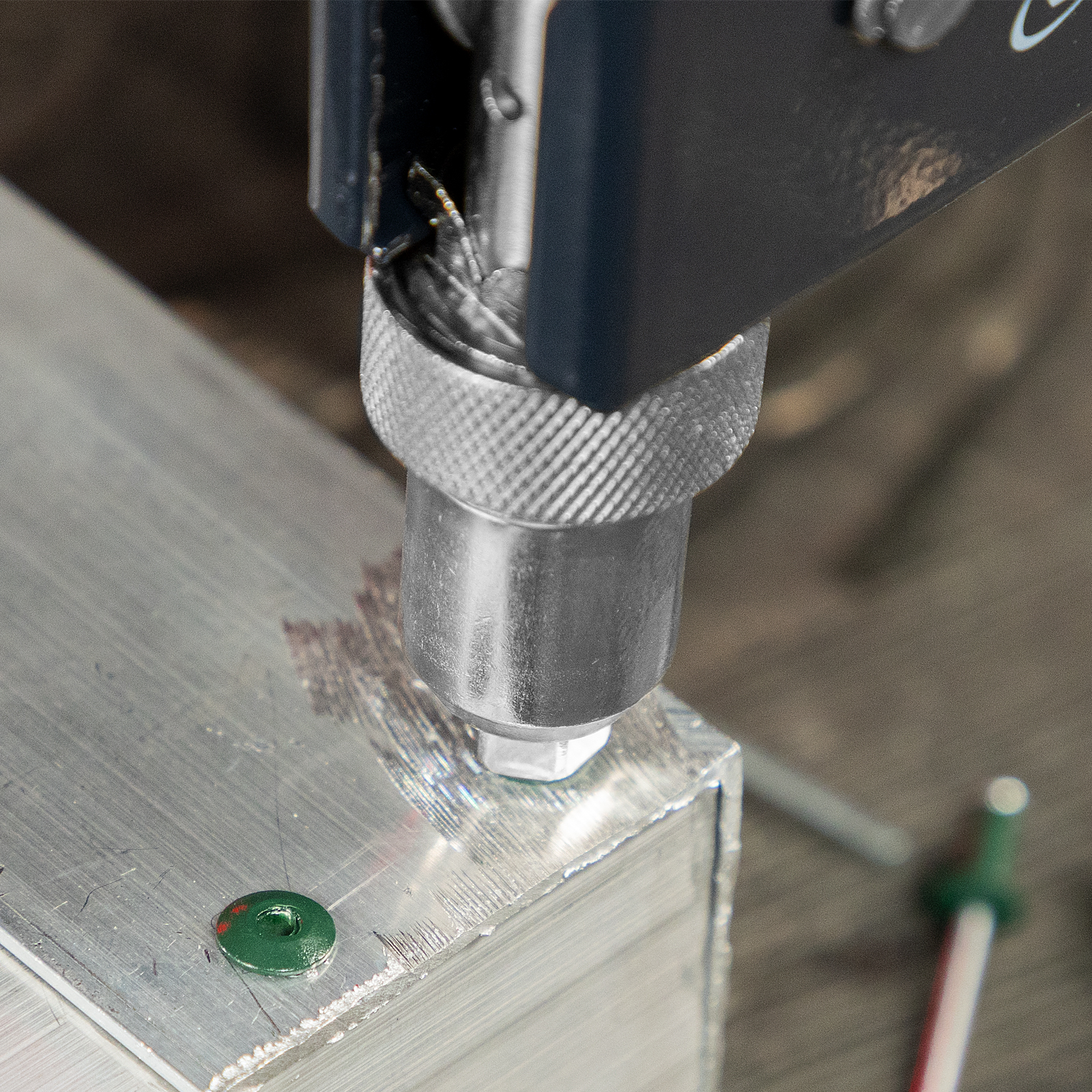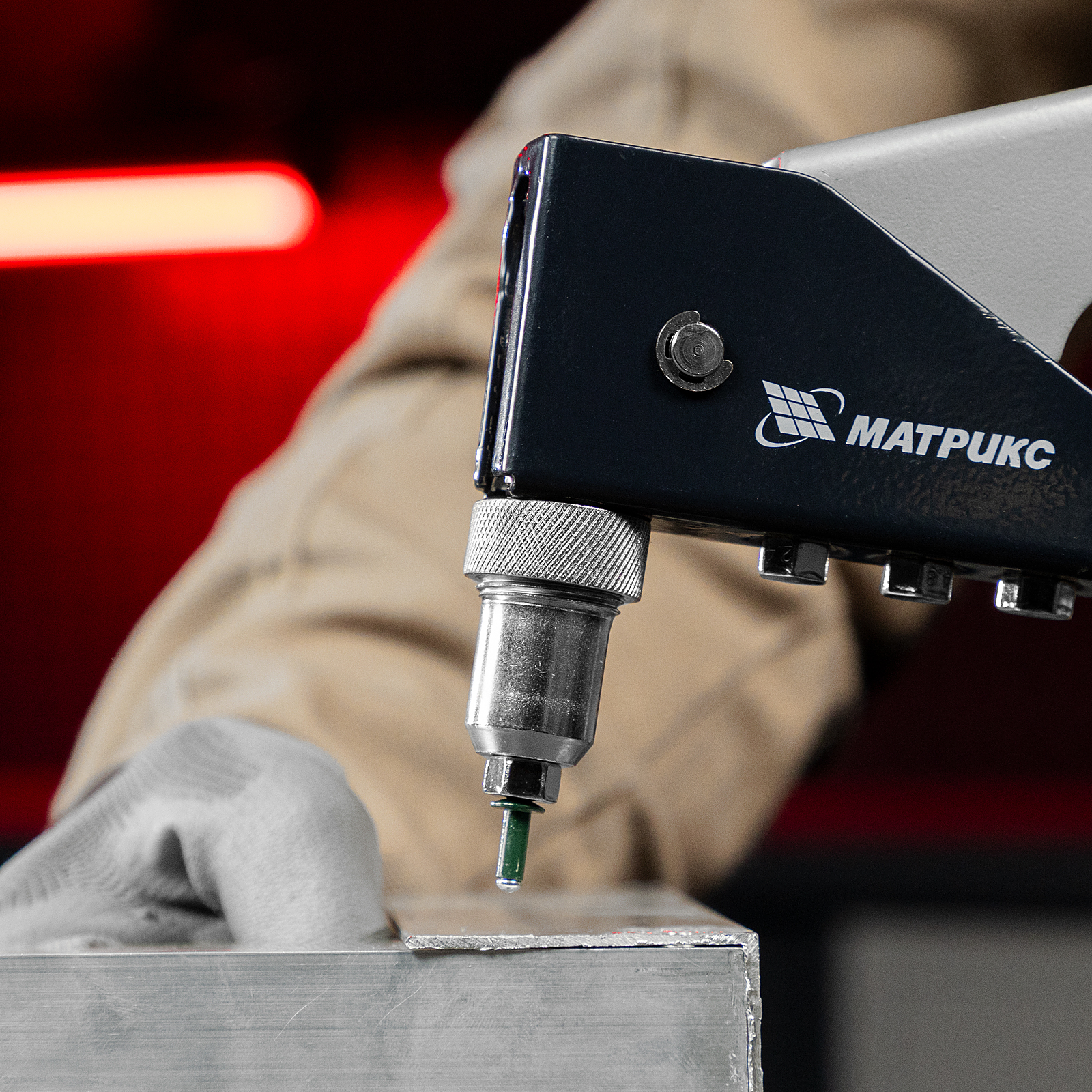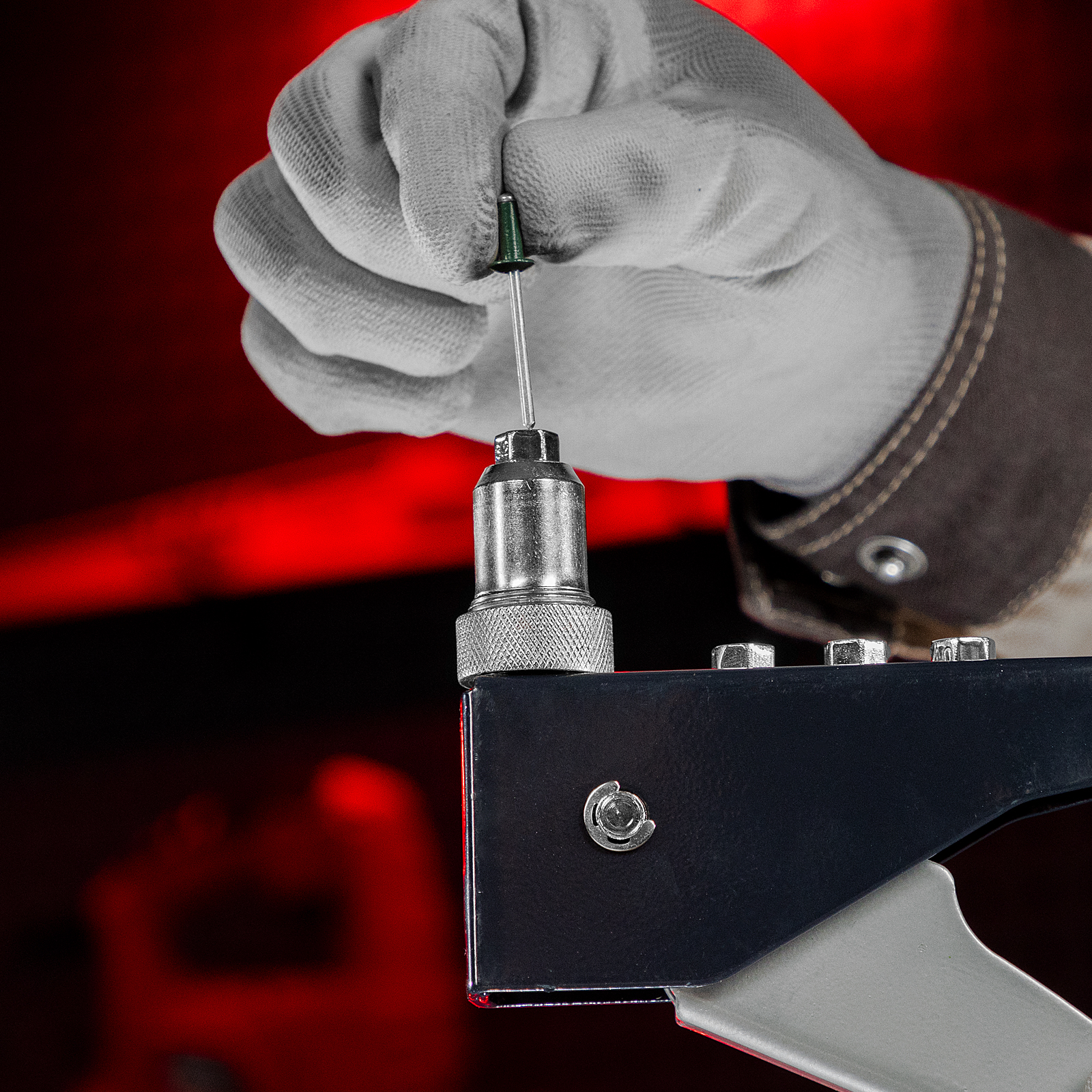 Быстрая установка насадок — сменные головки для заклепок разных диаметров размещены на корпусе, монтажный ключ для их замены входит в комплект поставки.