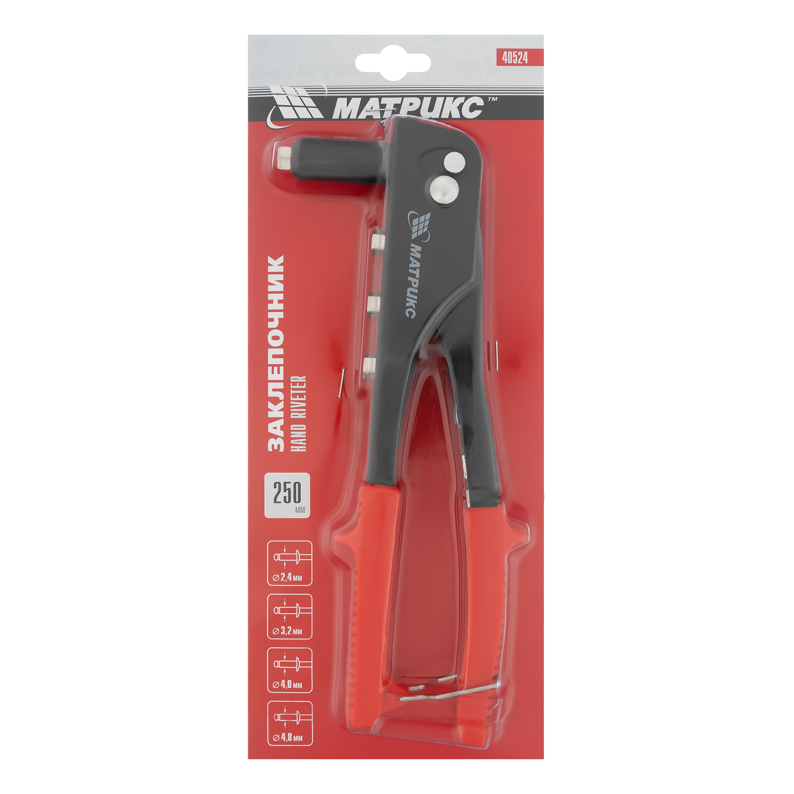 Заклепочник, 250 мм, заклепки 2.4-3.2-4.0-4.8 мм Матрикс