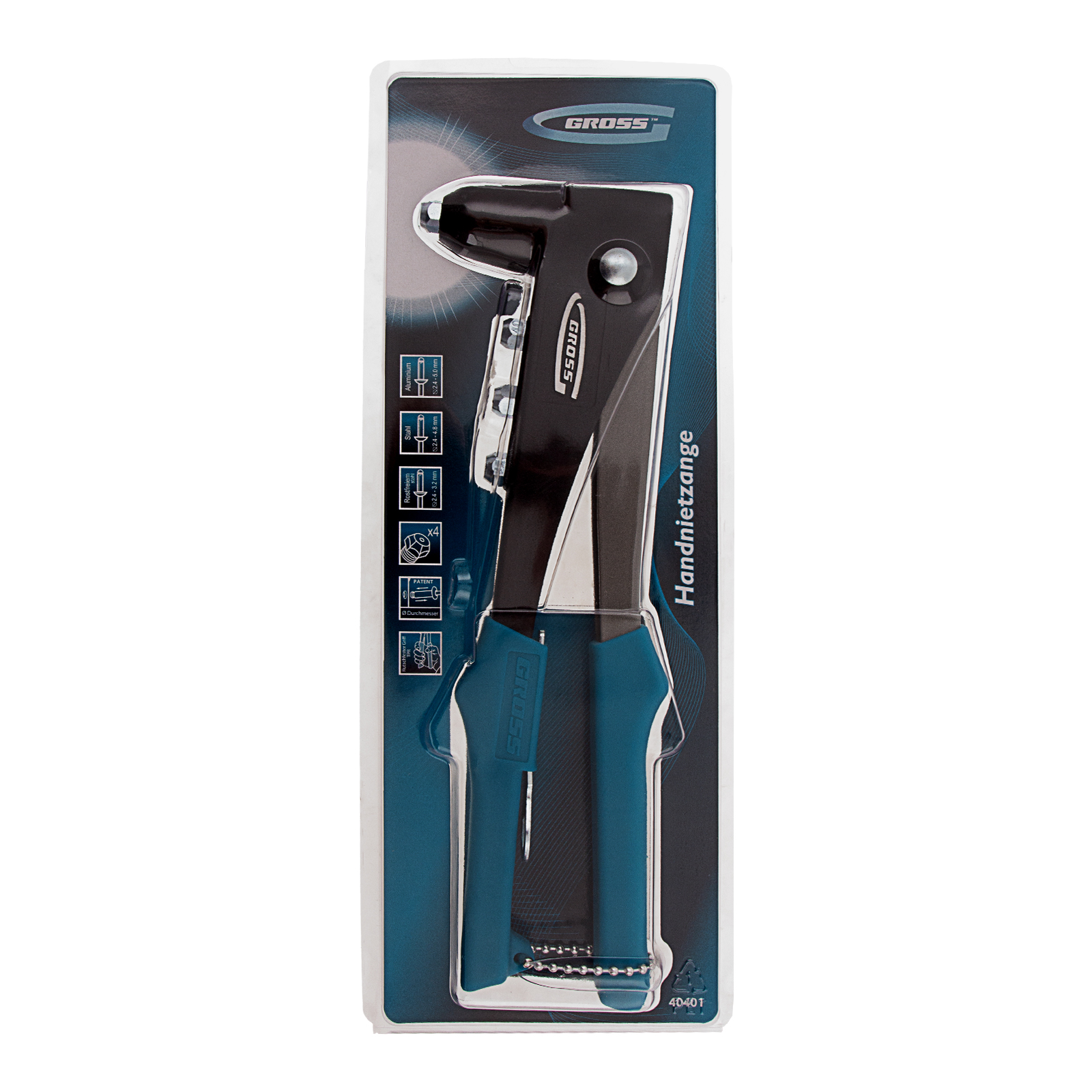 Литой заклепочник Gross 40401 надежно соединяет листовые заготовки при помощи алюминиевых и стальных заклепок размером от 2,4 до 4,8 мм, а также заклепок из нержавеющей стали диаметром 2,4-3,2 мм. В комплекте имеются сменные головки соответствующих размеров. Неиспользуемые насадки располагаются в корпусе инструмента, а значит, не придется тратить время на их поиск. Заклепочник рекомендован для профессионального применения, а также может быть полезен в быту.