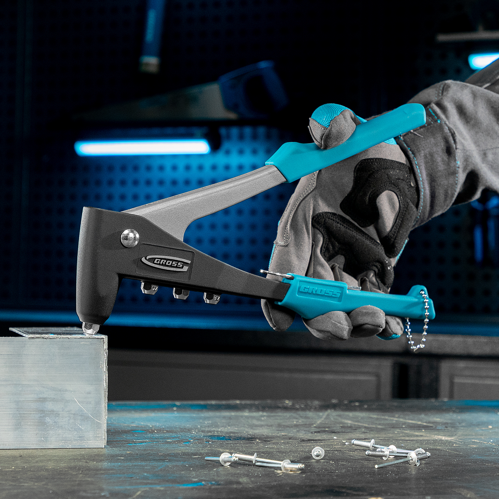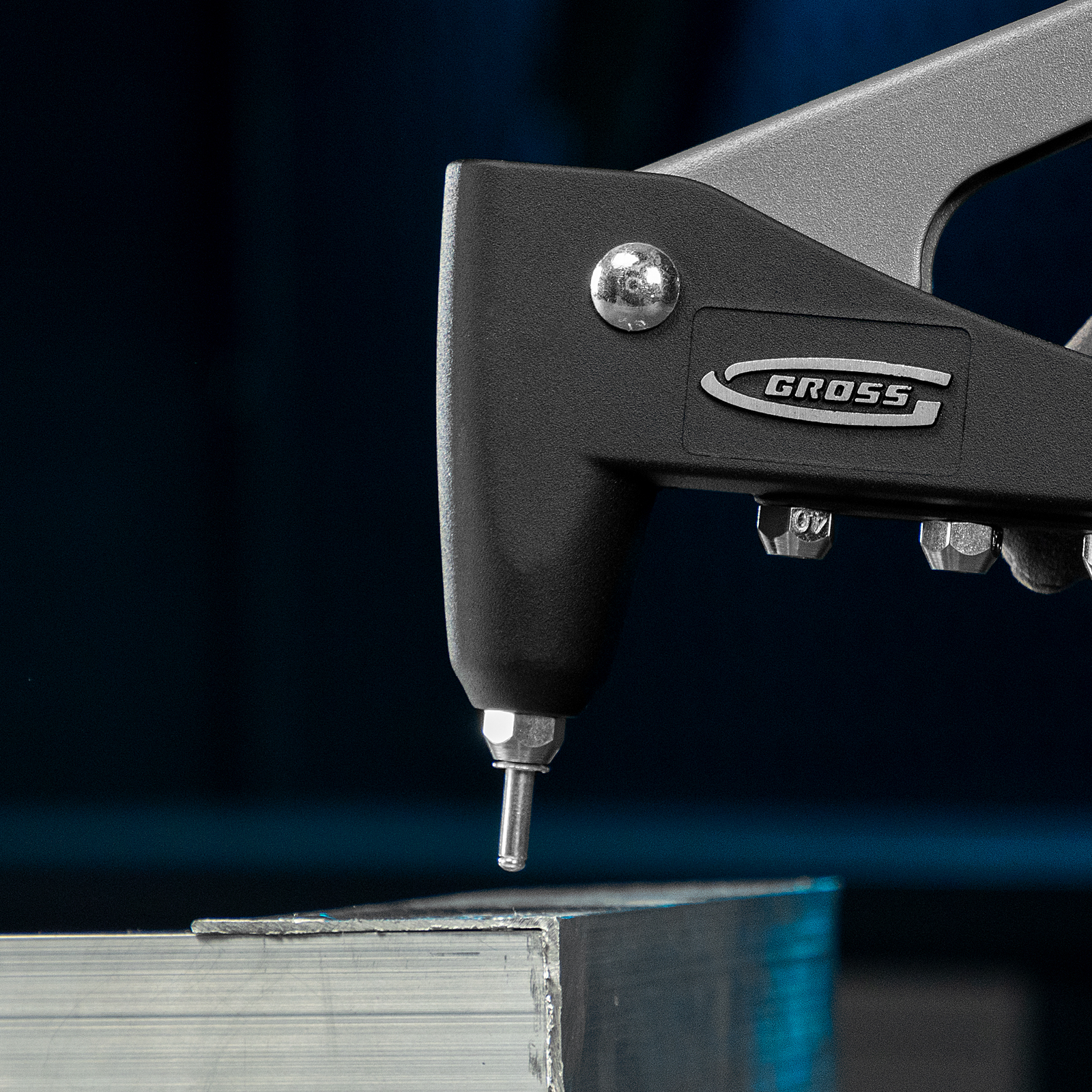 Стальной штампованный рычаг и литой корпус обеспечивают устойчивость к нагрузкам и высокий эксплуатационный ресурс заклепочника.