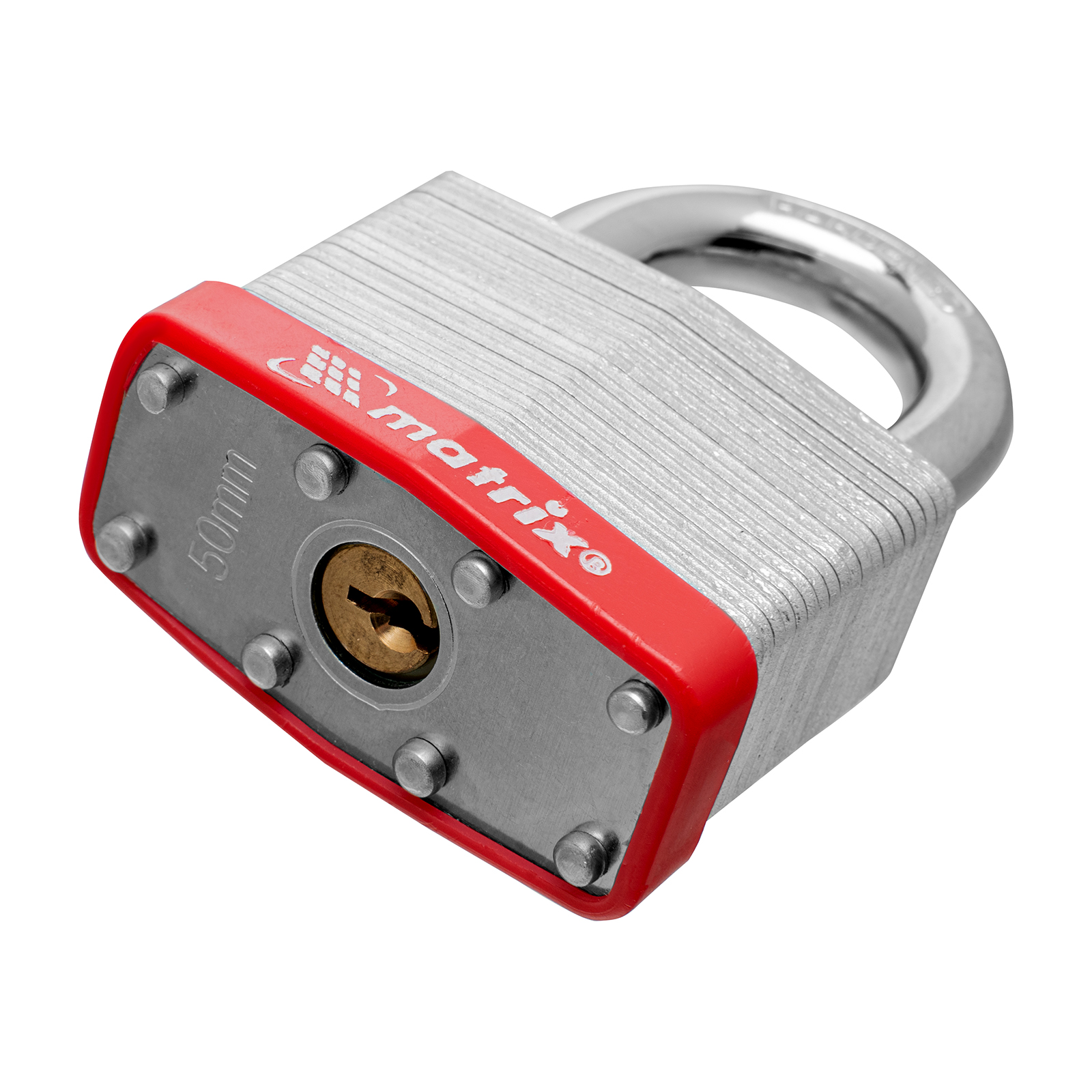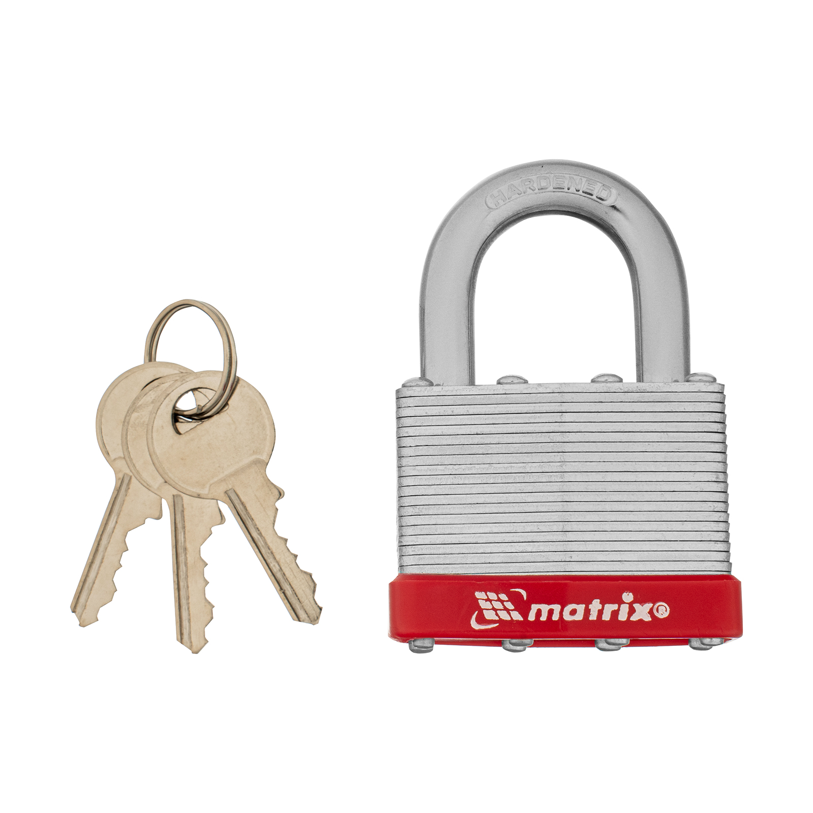 Навесной замок Matrix 91807 шириной 50 мм служит для обеспечения безопасности помещения и ценных вещей. Его можно повесить на ящик, дверь гаража, подсобки, склада, сарая, шкафчика и т.д. Дужку диаметром 9 мм сложно сбить или перекусить.