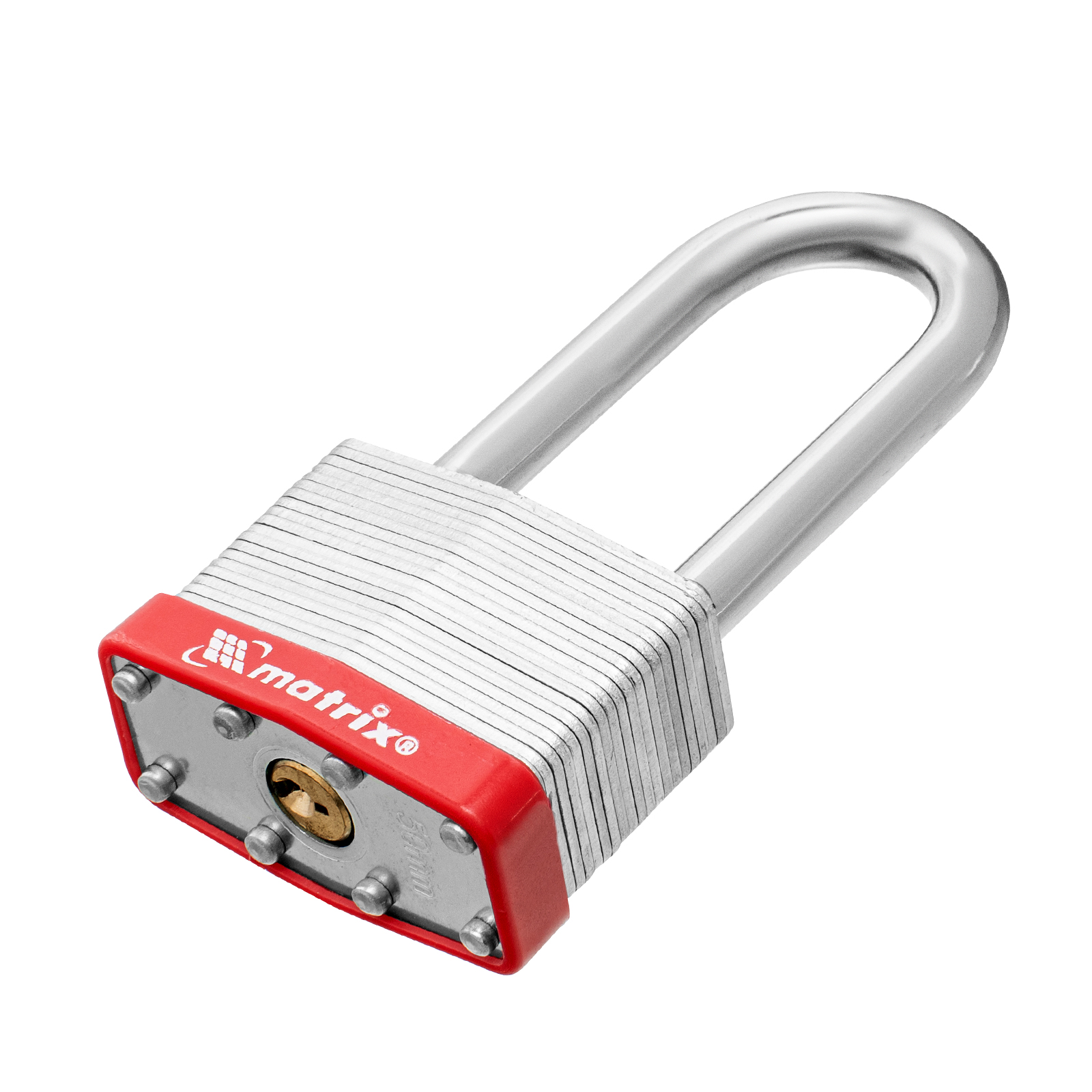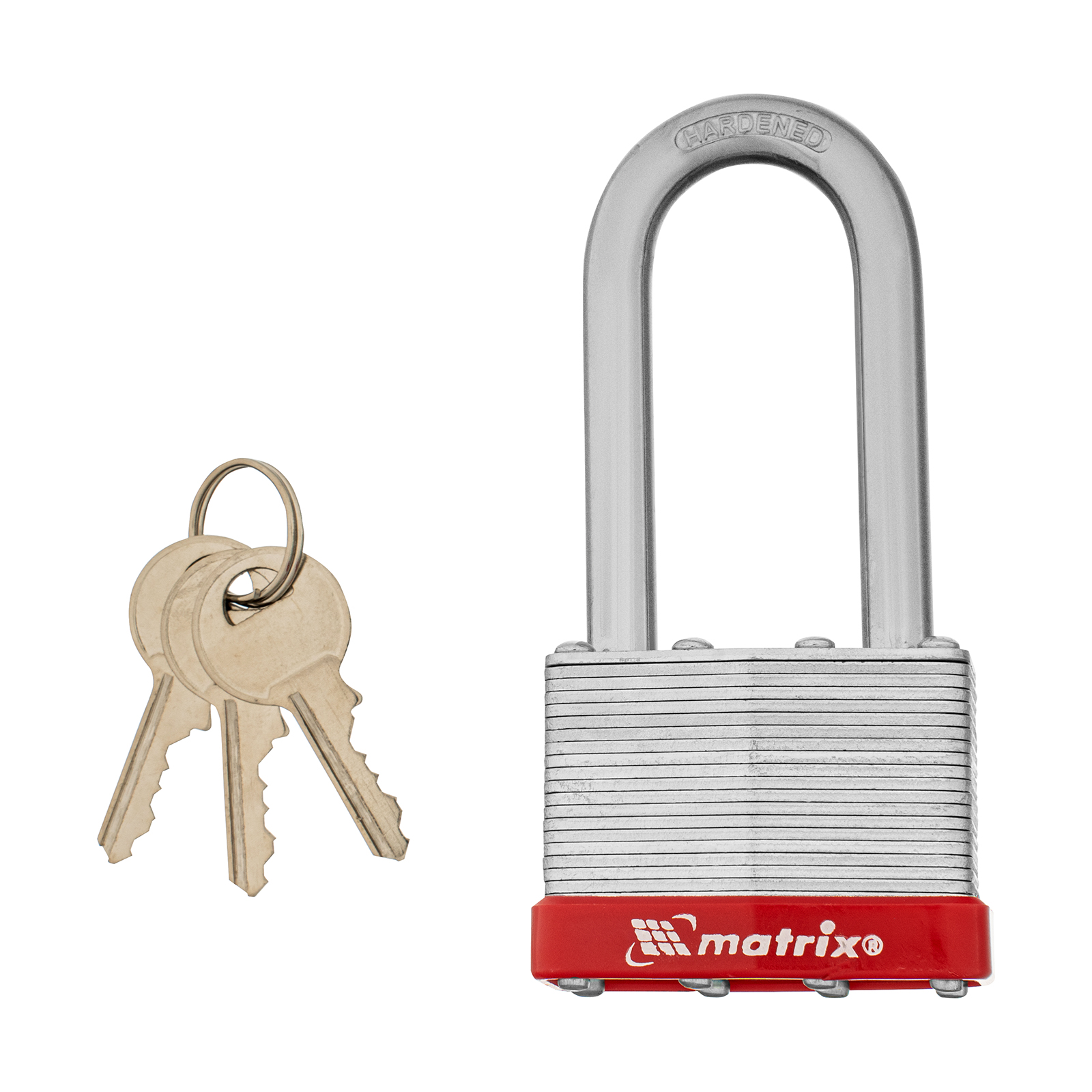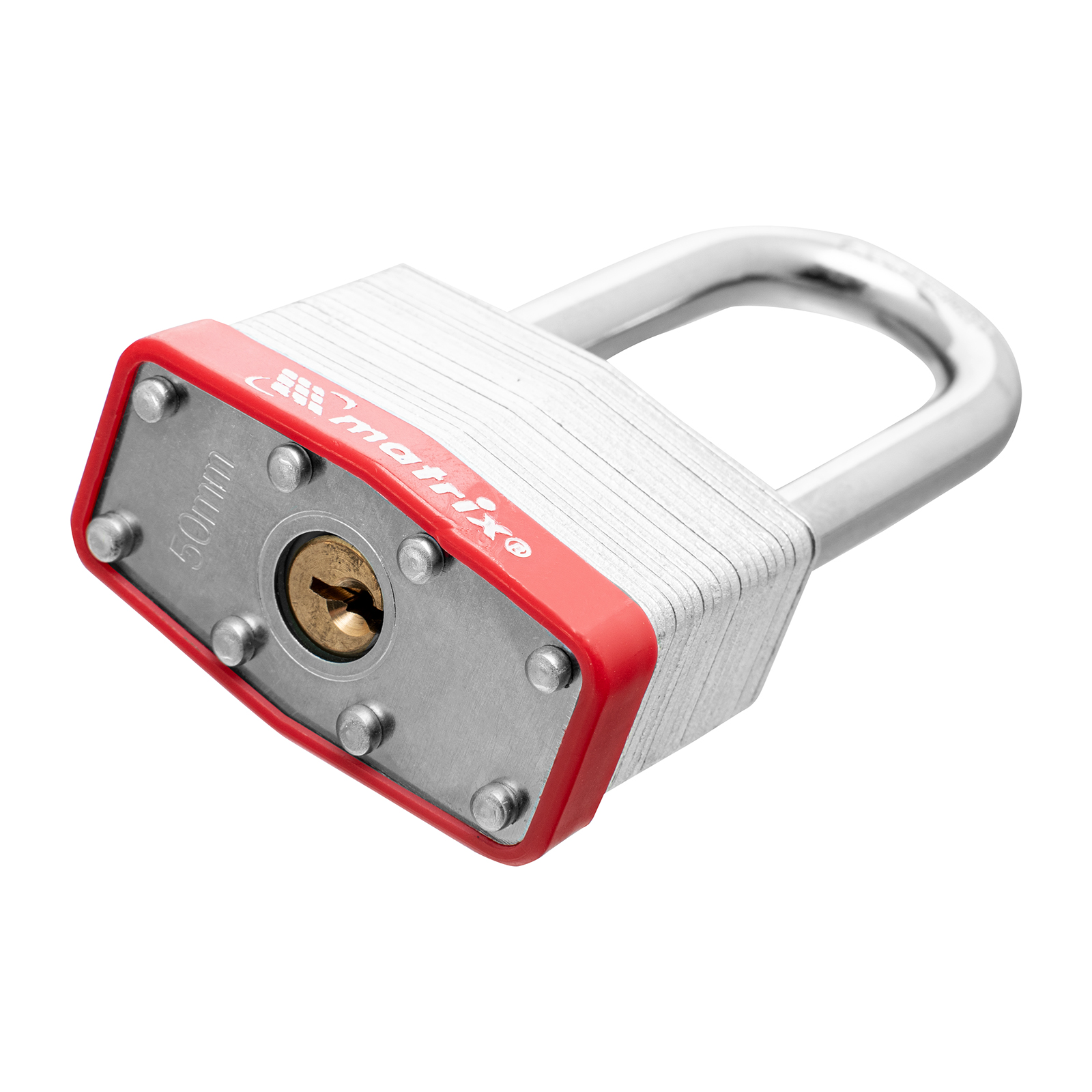 Навесной замок Matrix 91809 шириной 50 мм, с удлиненной дужкой, вешается на дверь для защиты от несанкционированного проникновения. Пригодится для запирания дверей гаража, подсобки и других помещений. Отличается повышенной взломостойкостью, т.к. дужку диаметром 9 мм сложно перекусить или сорвать.