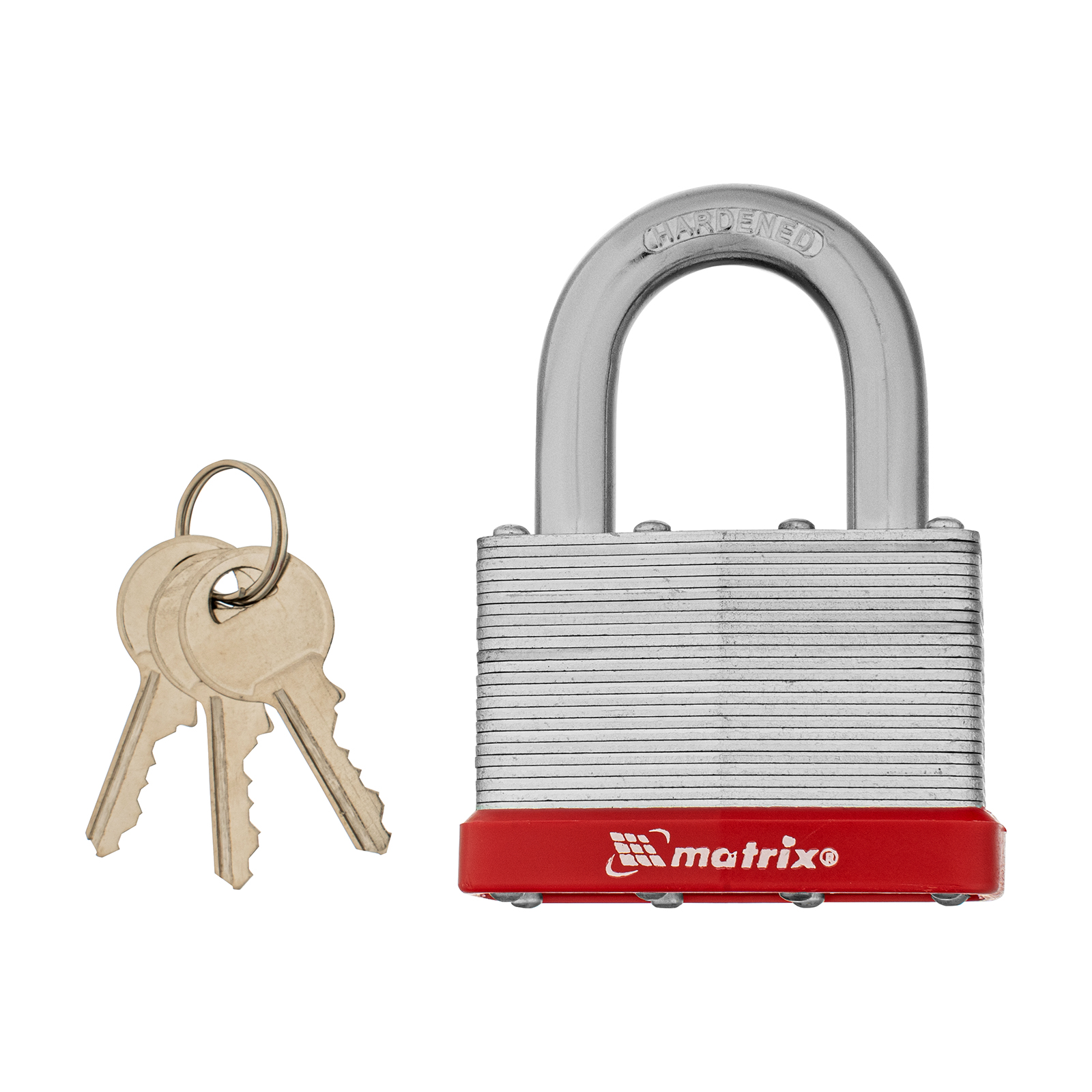 Навесной замок Matrix 91808 шириной 65 мм служит для обеспечения безопасности помещения и ценных вещей. Его можно повесить на ящик, дверь гаража, подсобки, склада, сарая, шкафчика и т.д. Дужку диаметром 9 мм сложно сбить или перекусить.