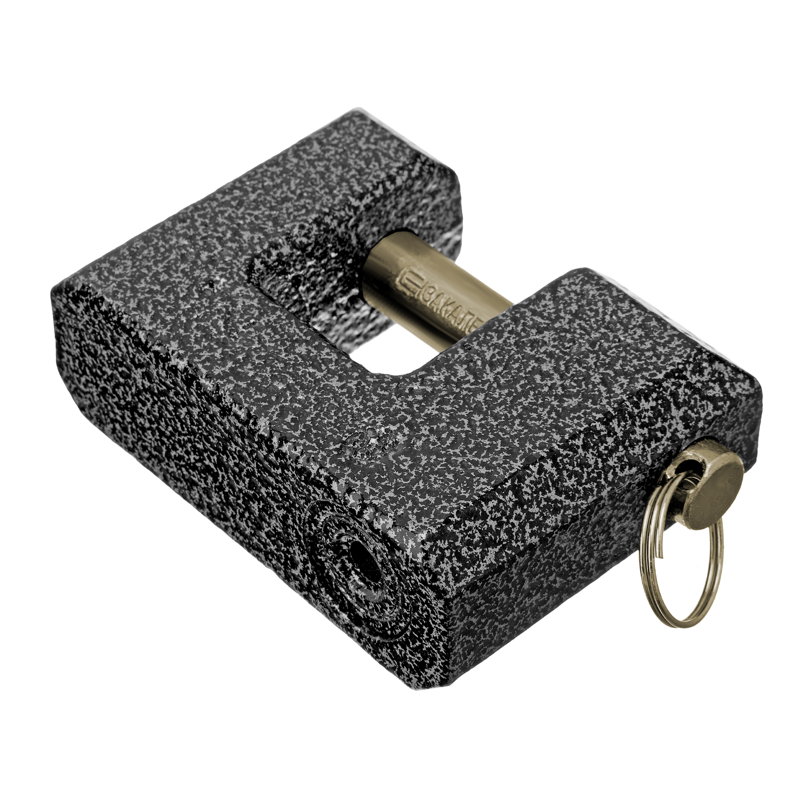 - Высокий показатель прочности — корпус изготовлен из чугуна, а дужка — из стали.